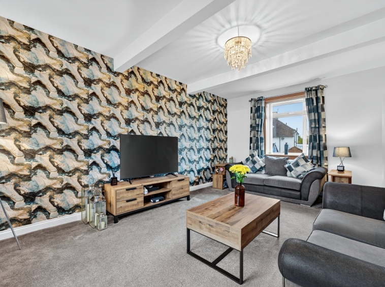 The welcoming entrance hallway is complete with stylish neutral decor, fitted carpet and carpeted staircase leading to the upper level. Door access to the lounge and bedroom three.