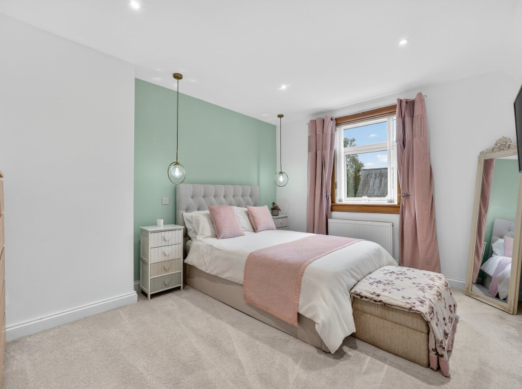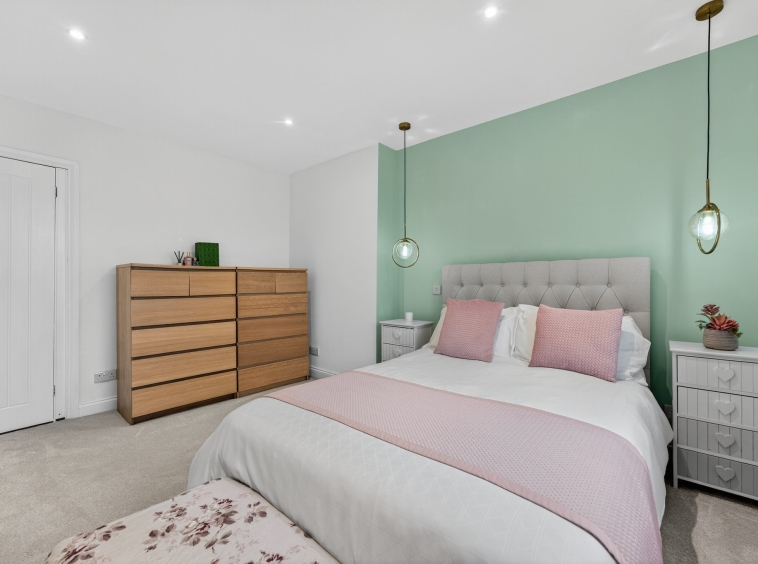 4.09m x 3.72m (13′ 5″ x 12′ 2″) On the upper level the master bedroom is a generous double offering modern decor, engineered oak flooring and practical storage cupboard. Double glazed window to the rear overlooking the gardens.