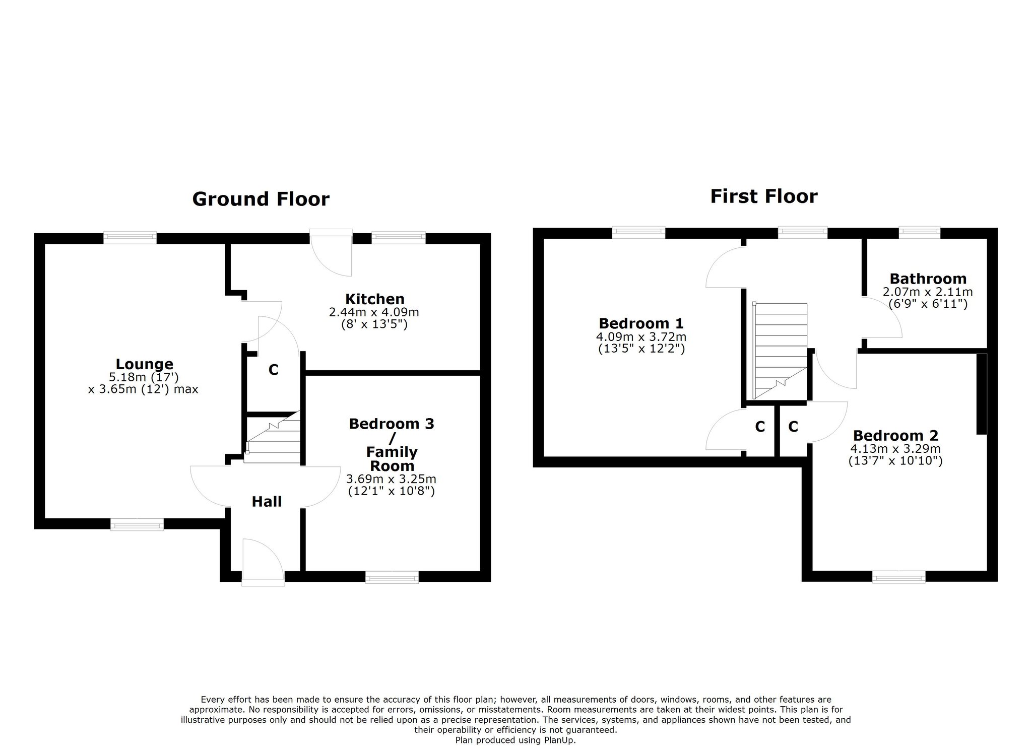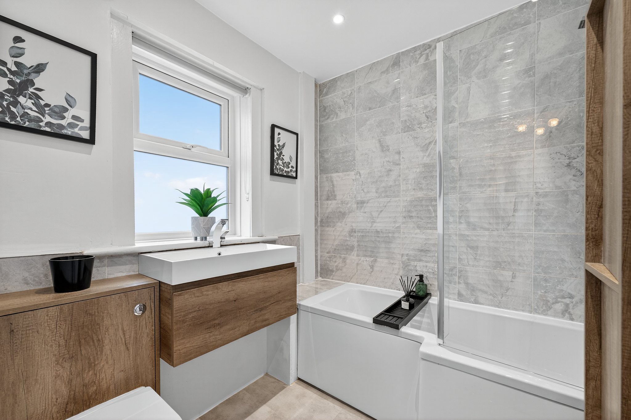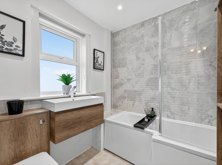 2.11m x 2.07m (6′ 11″ x 6′ 9″) Completing the accommodation is the three piece family bathroom suite comprising of a wash hand basin with vanity storage, wc and shower cubicle with mains overhead shower. Modern tiling to walls, laminate flooring, heated towel rail, ceiling spotlights and double glazed window to the rear.