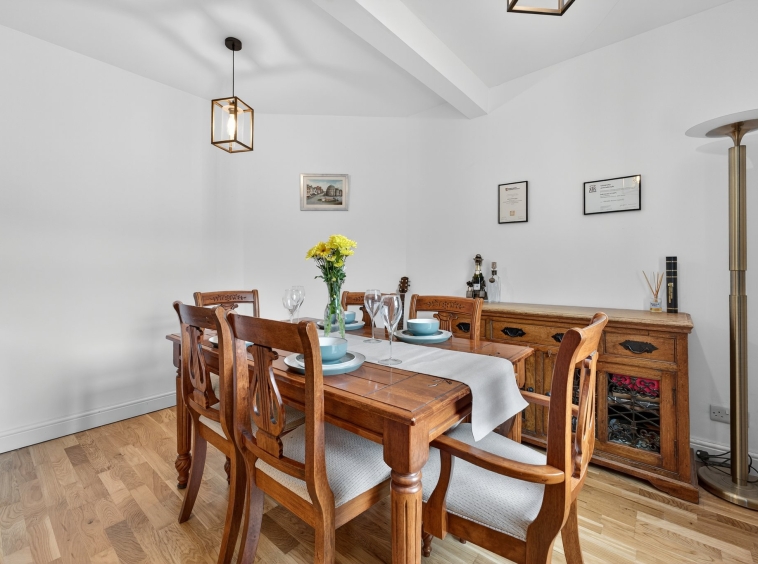 3.69m x 3.25m (12′ 1″ x 10′ 8″) Conveniently located on the ground floor, bedroom three offers soft decor, engineered oak flooring and a double glazed window to the front. A flexible apartment, currently utilised as a dining room which could lend itself to a multitude of uses.