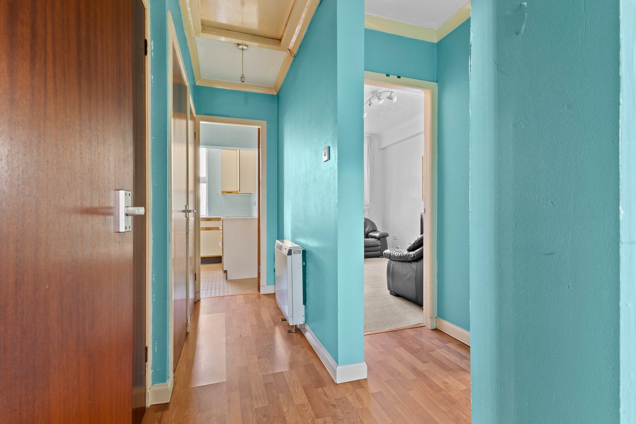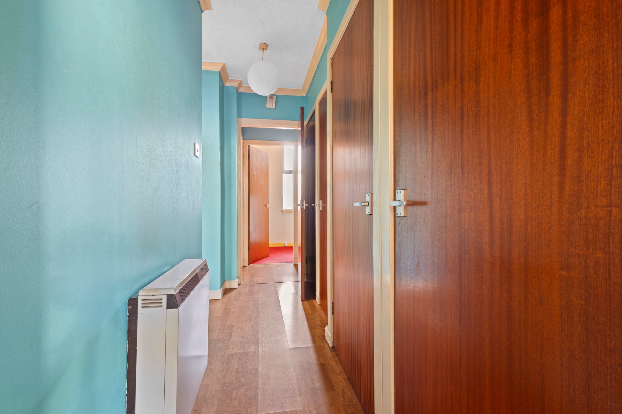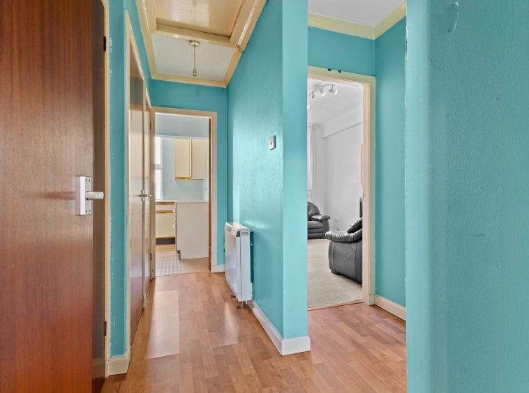 3.46m x 2.03m (11′ 4″ x 6′ 8″) 0.99m x 1.54m (3′ 3″ x 5′ 1″) Access is given via an outer door to a welcoming entrance hallway boasting modern decor, a variety of cupboards providing ample storage and laminate flooring. The hallway gives access to all apartments.