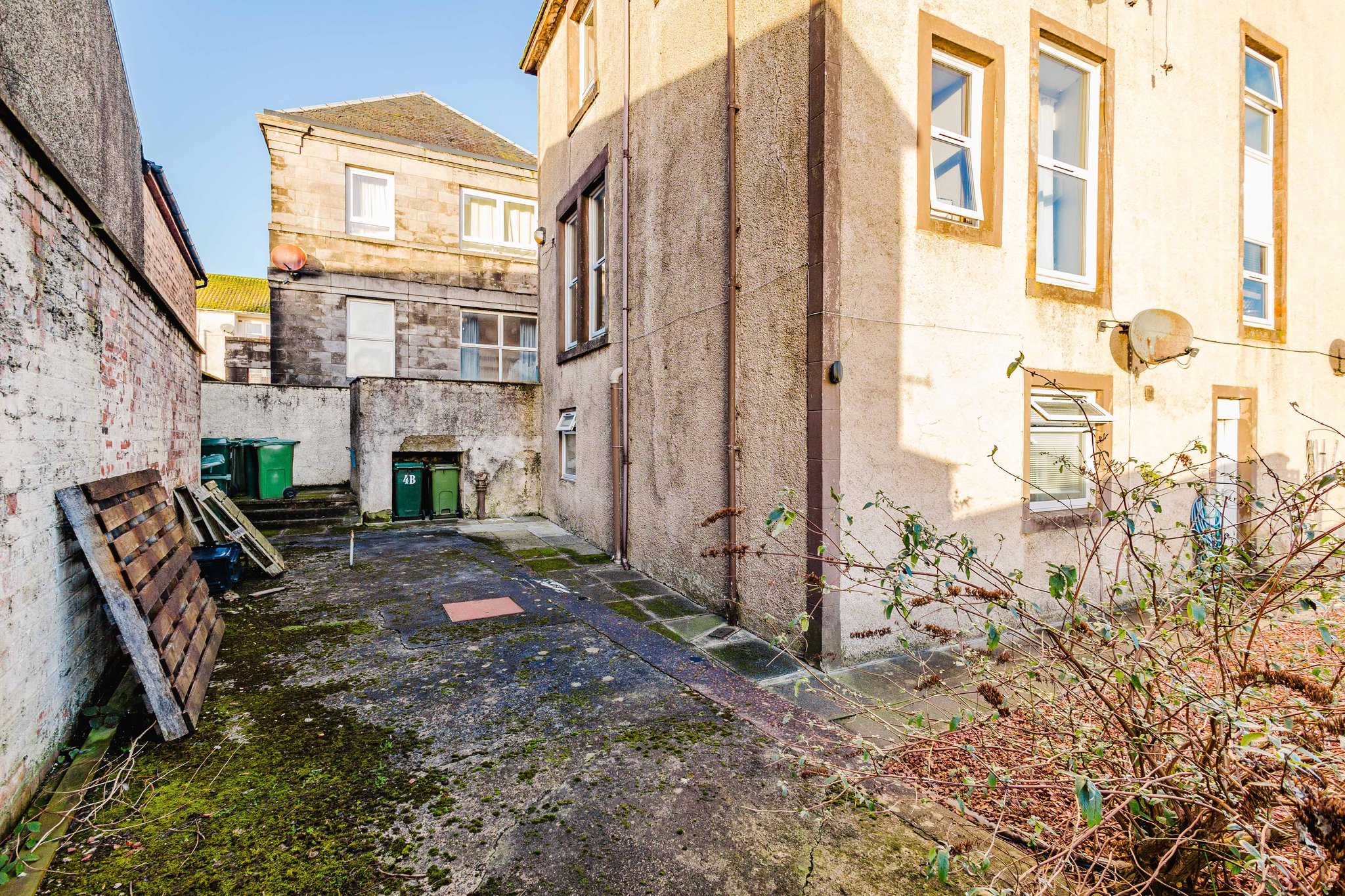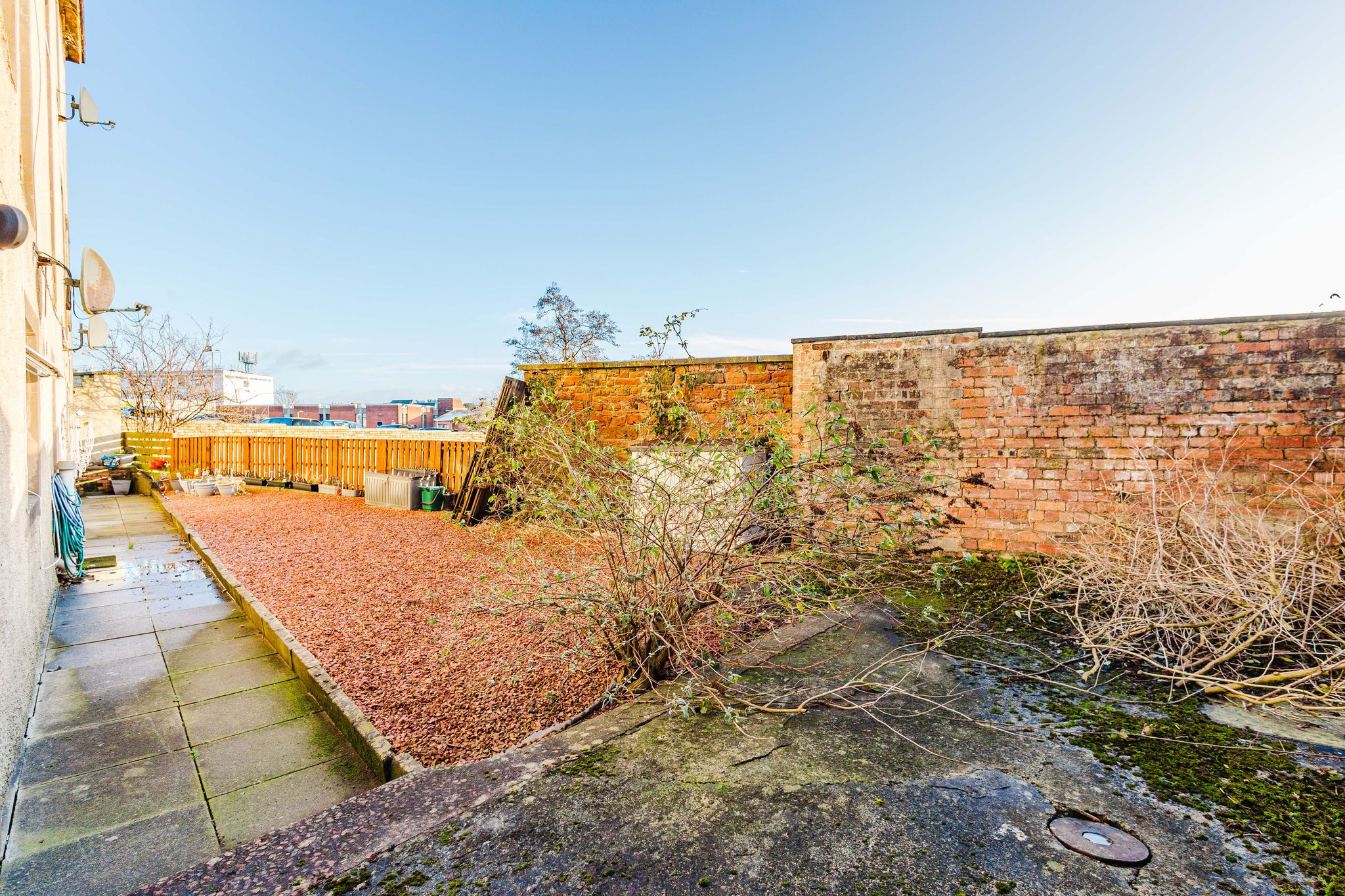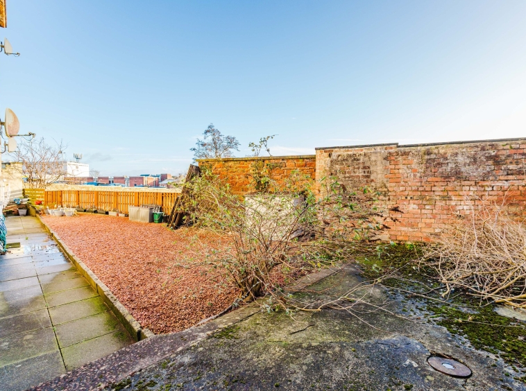 Boasting a communal garden with an area laid to chips and an area for bin storage.