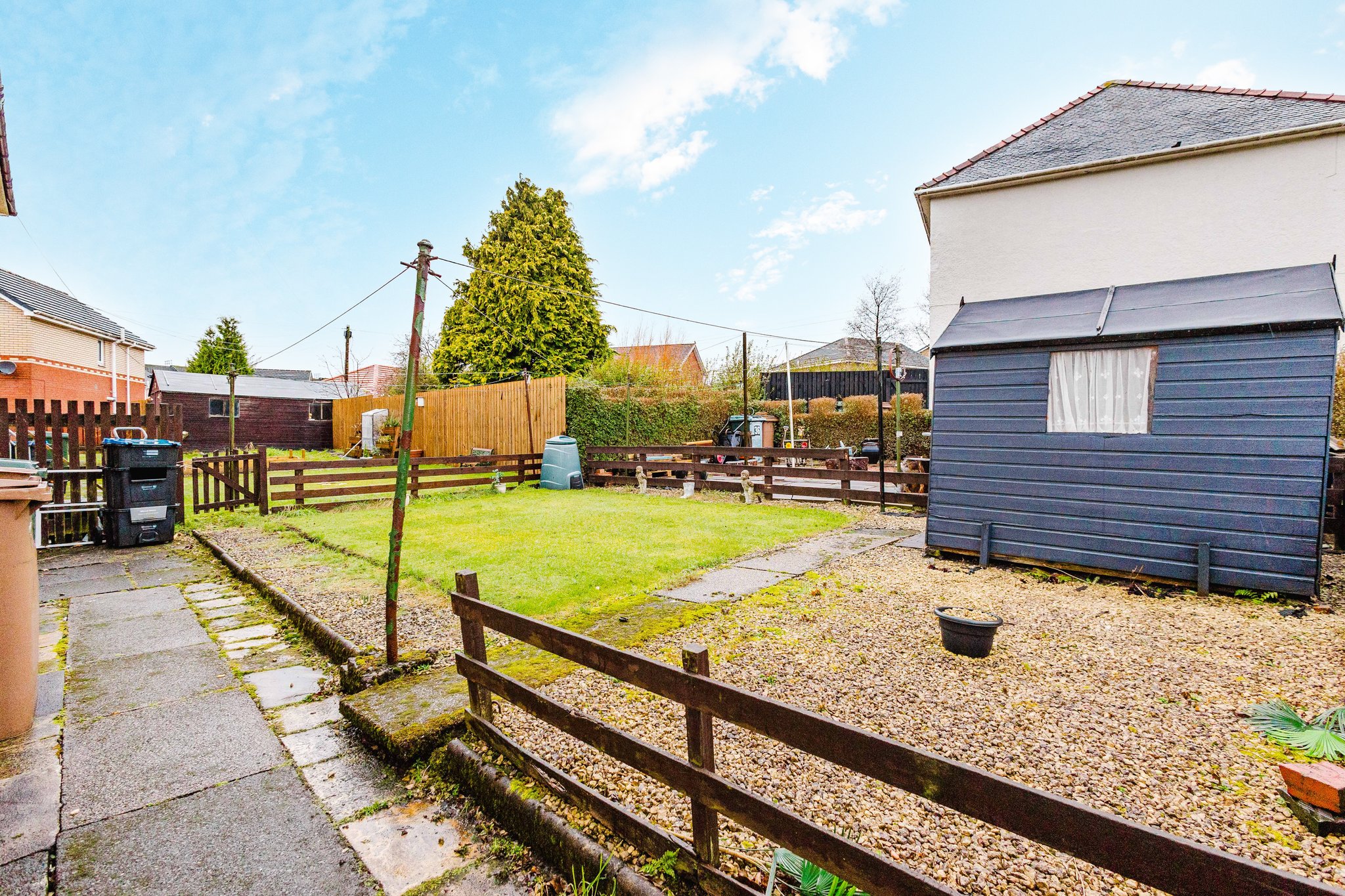 This property boasts spacious private front and rear gardens, the front garden has been designed with ease of maintenance in mind being full laid to chip whilst the rear garden is complete with a well manicured lawn and an area laid to chips.