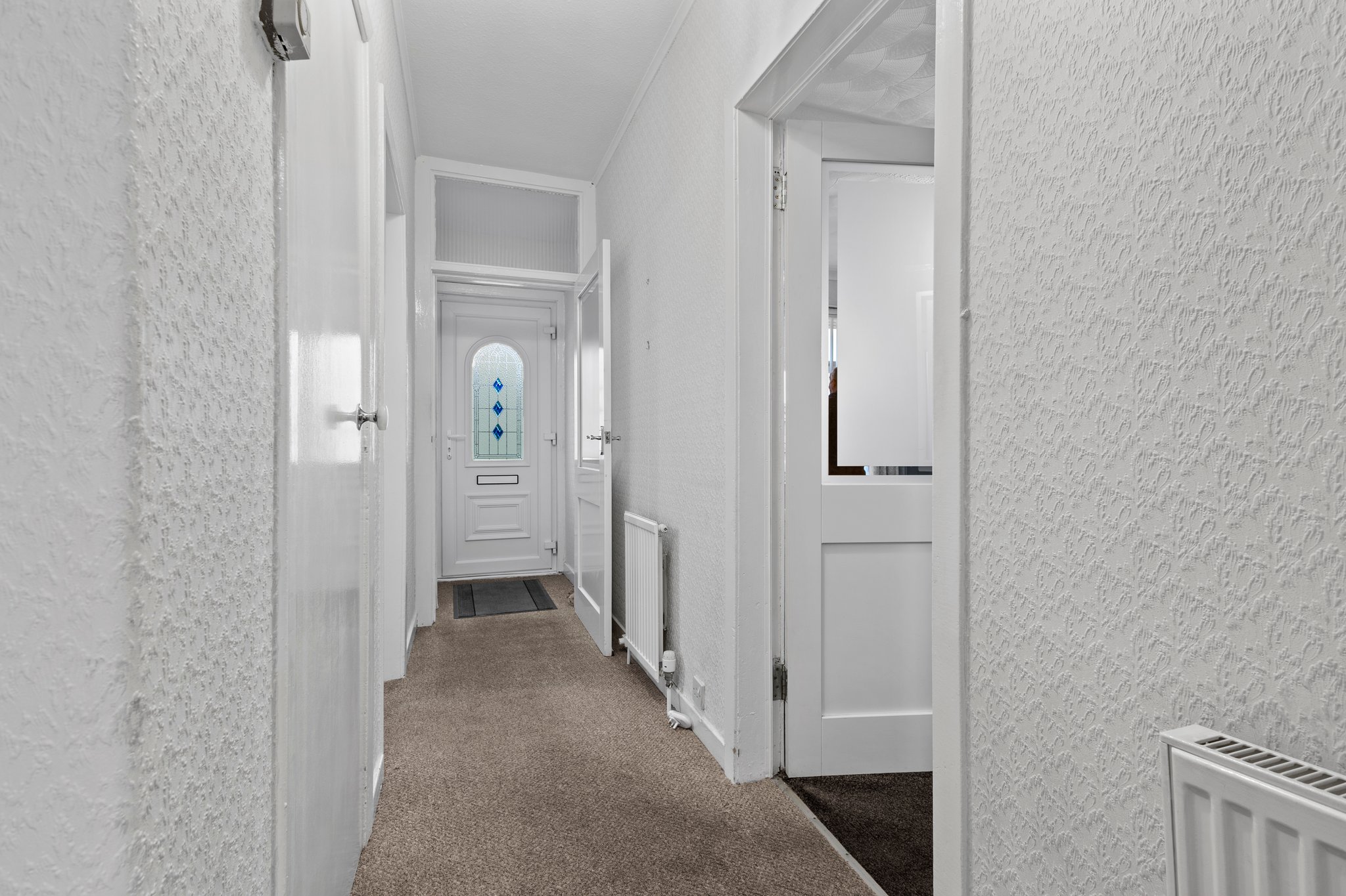 2.26m x 4.18m (7′ 5″ x 13′ 9″) Access is given to a welcoming entrance hallway boasting neutral decor, practical storage cupboard and fitted carpet. The hallway gives access to all apartments.