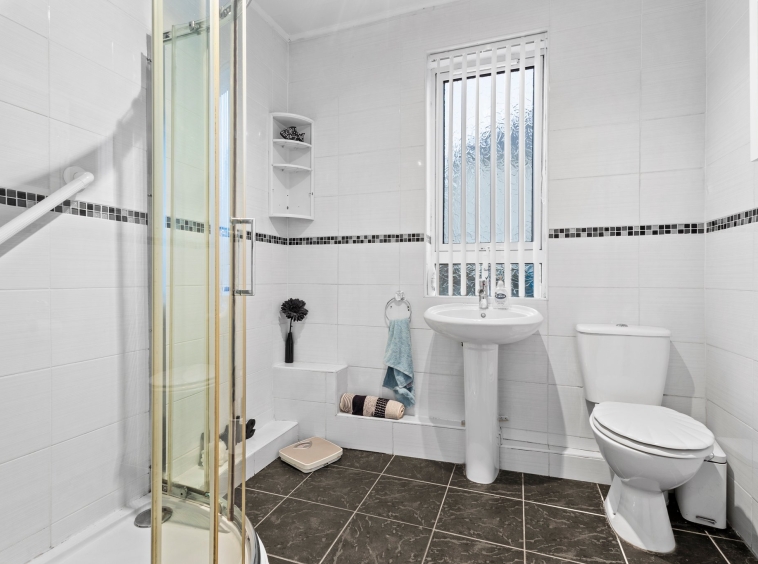 2.26m x 1.90m (7′ 5″ x 6′ 3″) Completing the accommodation is the bathroom comprising of a wash hand basin, wc, shower cubicle with mains shower, heated towel rail, fully tiled finish and a double glazed window to the rear.
