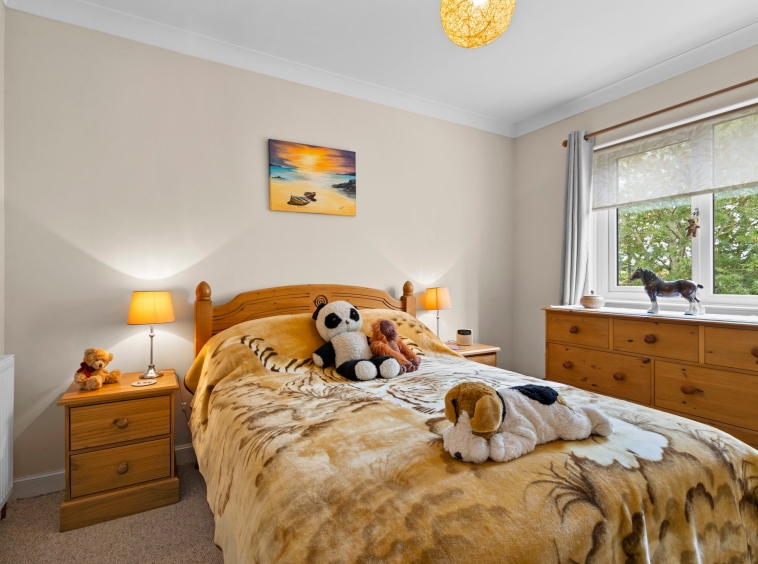 2.62m x 3.52m (8′ 7″ x 11′ 7″) A spacious double bedroom with modern decor, fitted wardrobe, fitted carpet and a double glazed window to the rear.