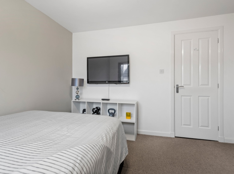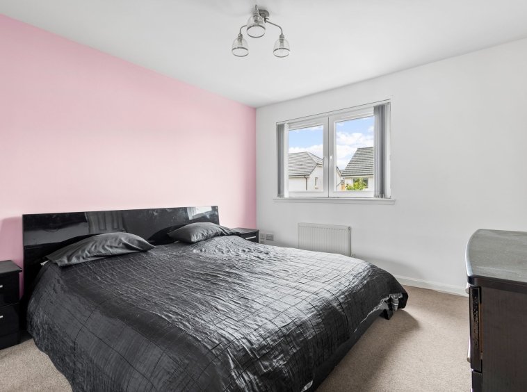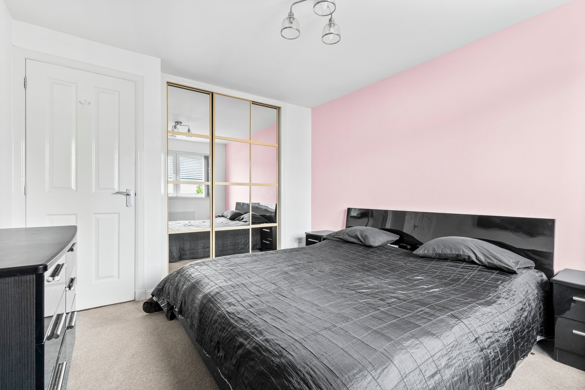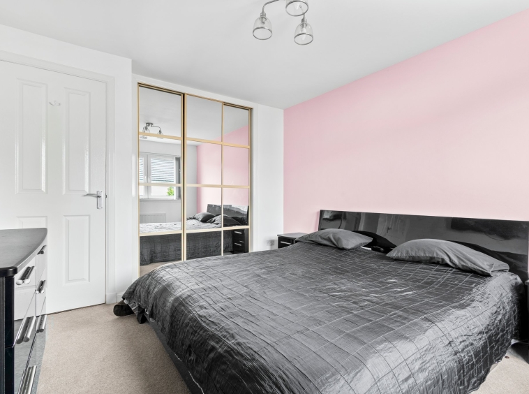 3.25m x 3.68m (10′ 8″ x 12′ 1″) Double bedroom featuring soft decor, fitted carpet, fitted wardrobes, door access to an en-suite and double glazed window to the rear.