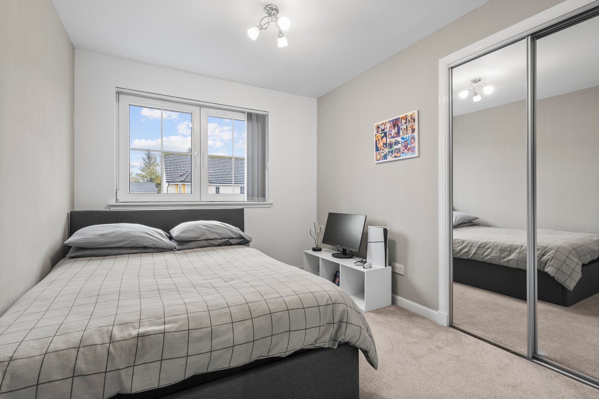 3.5m x 3.09m (11′ 6″ x 10′ 2″) Double bedroom featuring neutral decor, fitted wardrobes, fitted carpet and double glazed window to the front.