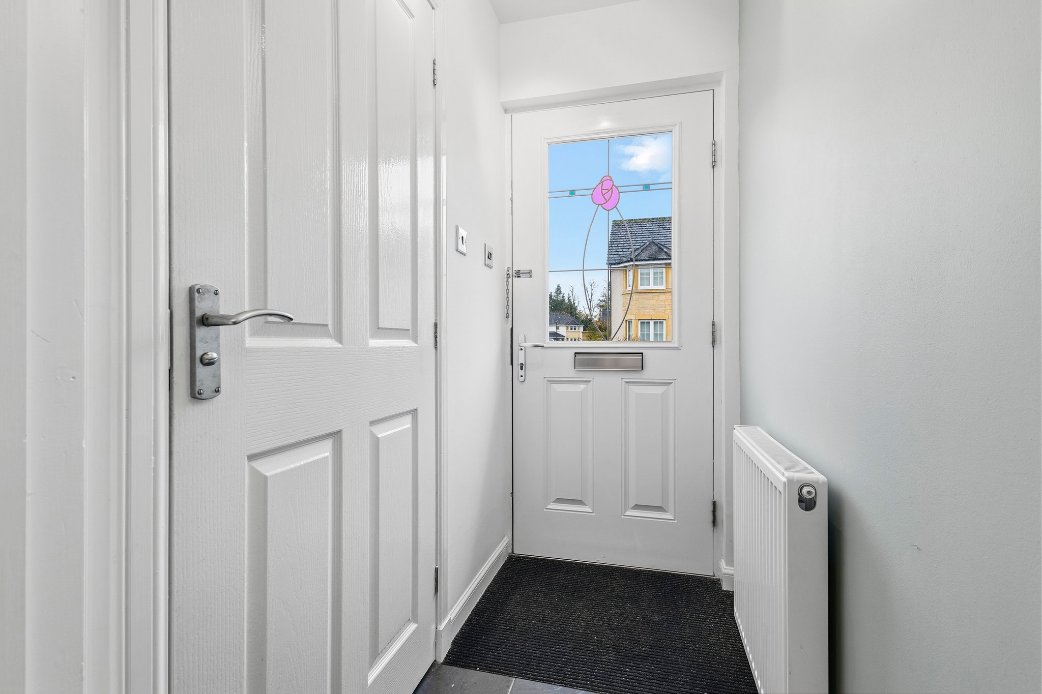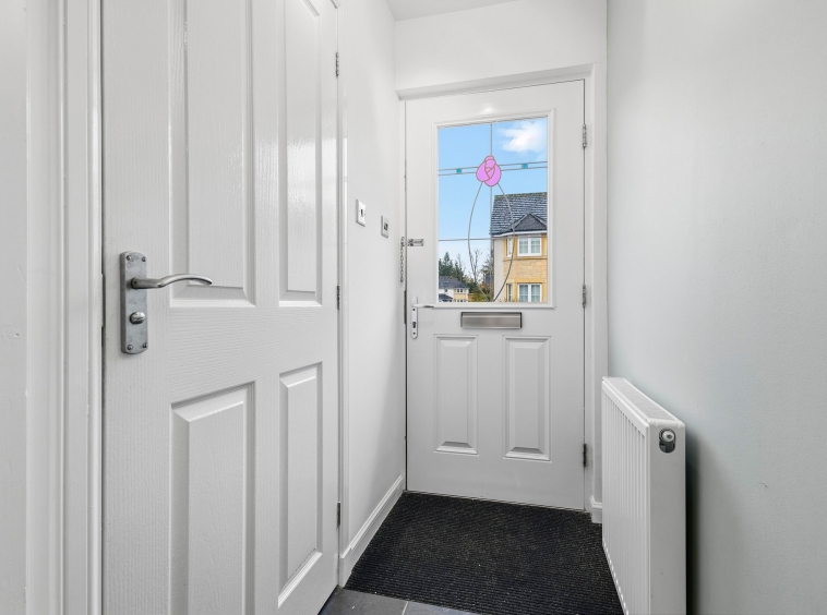 1.02m x 1.79m (3′ 4″ x 5′ 10″) Accessed via outer wooden double glazed door, crisp white decor, anthracite tiled floor, fitted ribbed door mat, door access to WC and livingroom.