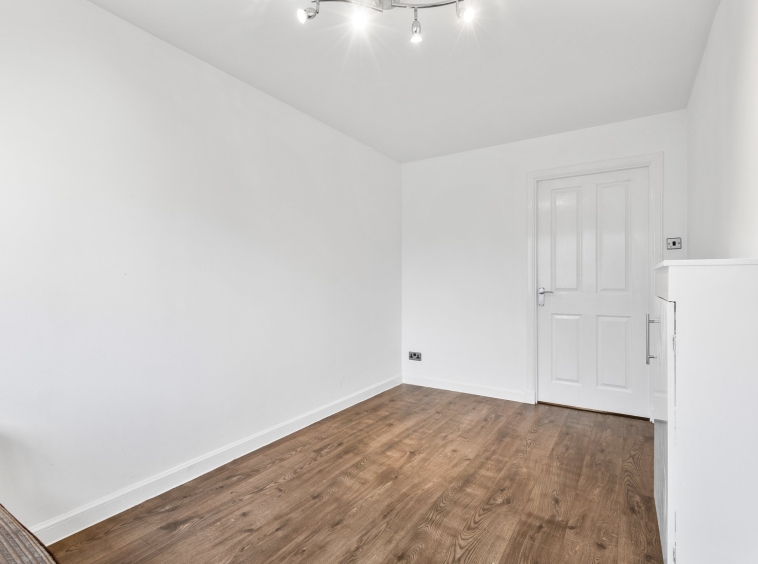 2.53m x 4.34m (8′ 4″ x 14′ 3″) Flexible living space featuring crisp white decor, laminate flooring and double glazed window to the front.