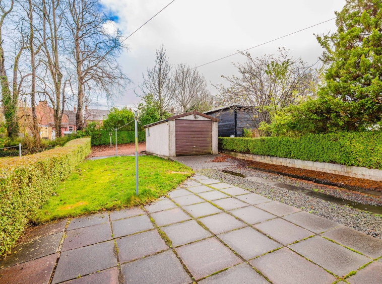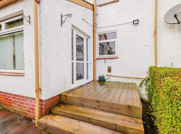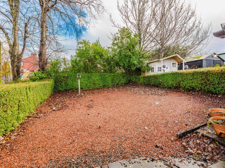 This property further benefits from a front garden laid to chip with mature shrubbery, a private driveway allowing ample off street parking, external storage cupboard, a sizeable garage, 3.35m x 5.14m (11′ 0″ x 16′ 10″), the rear garden is wrapped on all sides by mature shrubbery and offers a chipped area, a manicured lawn and a patio area laid to slab.
