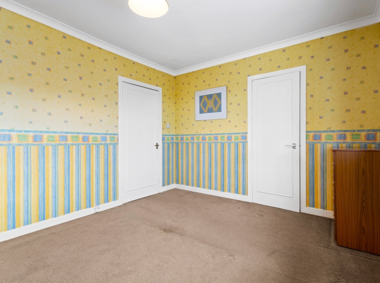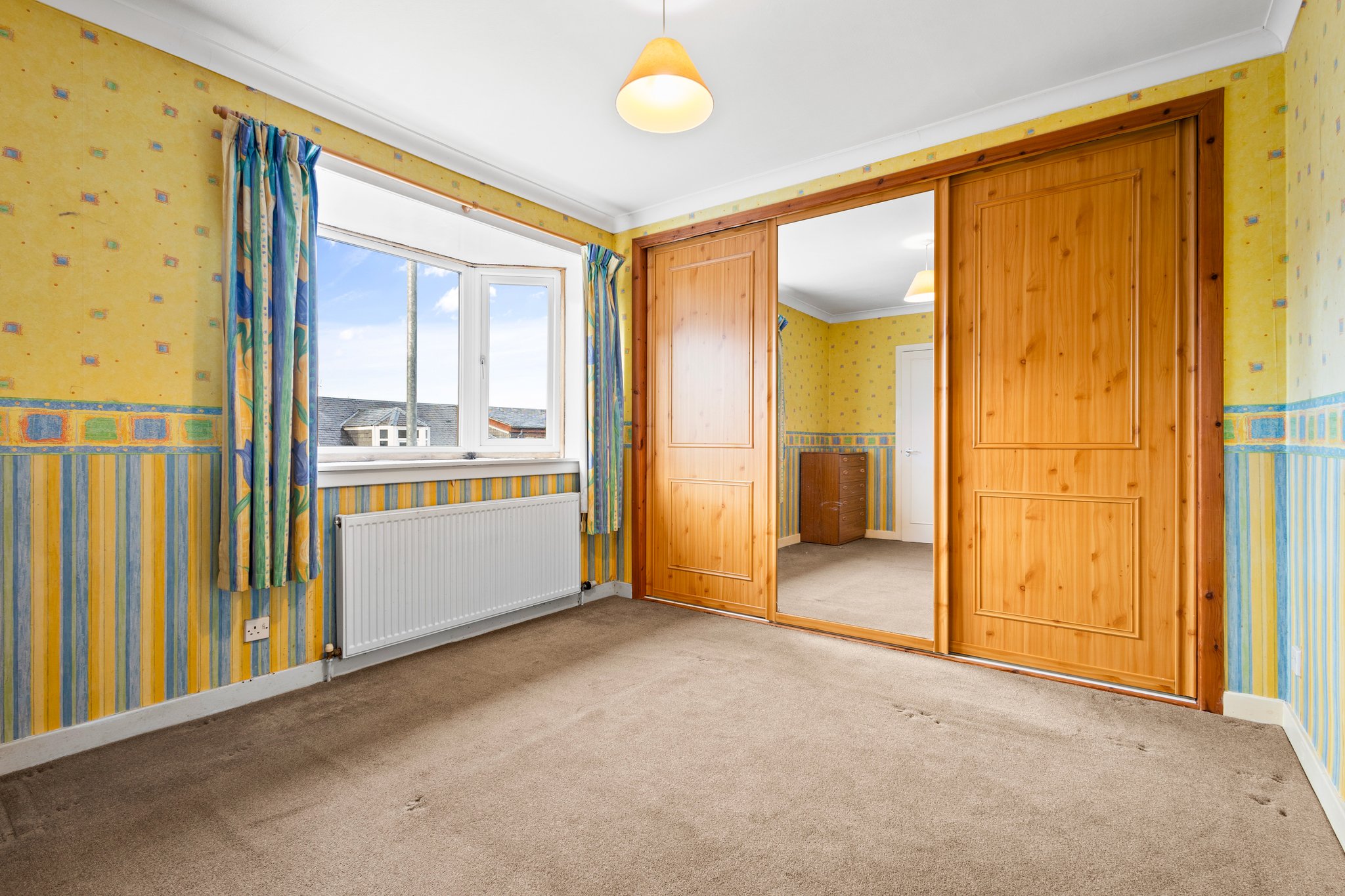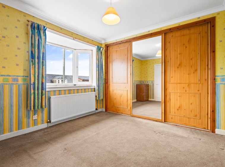 3.64m x 3.13m (11′ 11″ x 10′ 3″) Spacious double bedroom offering plentiful storage with a fitted triple wardrobe, separate storage cupboard, fitted carpet and double glazed window to the front.