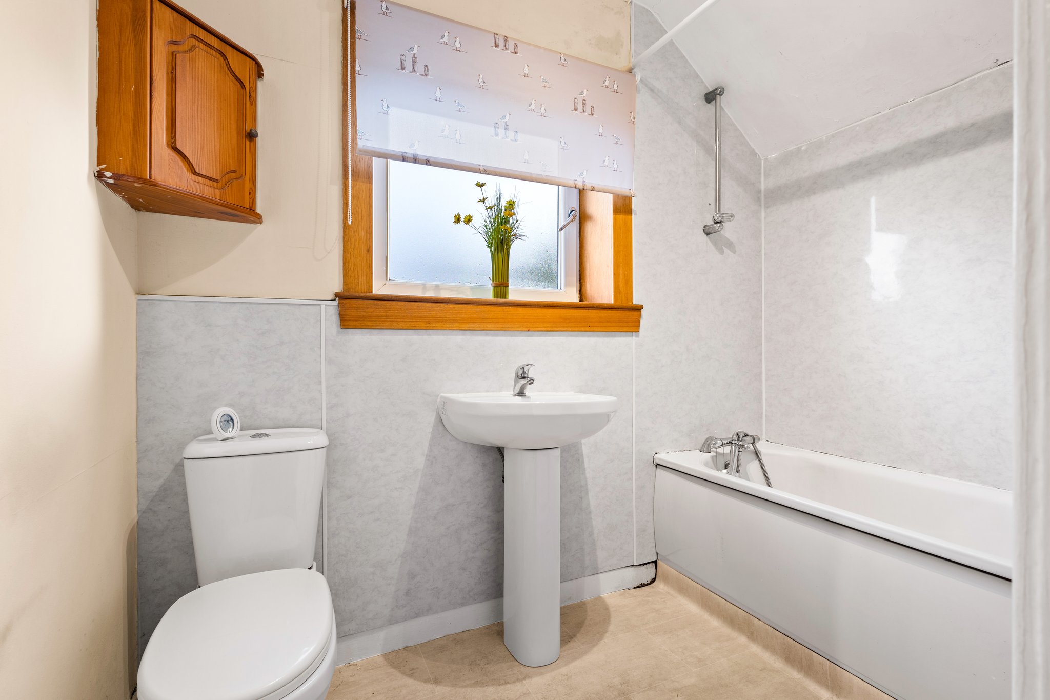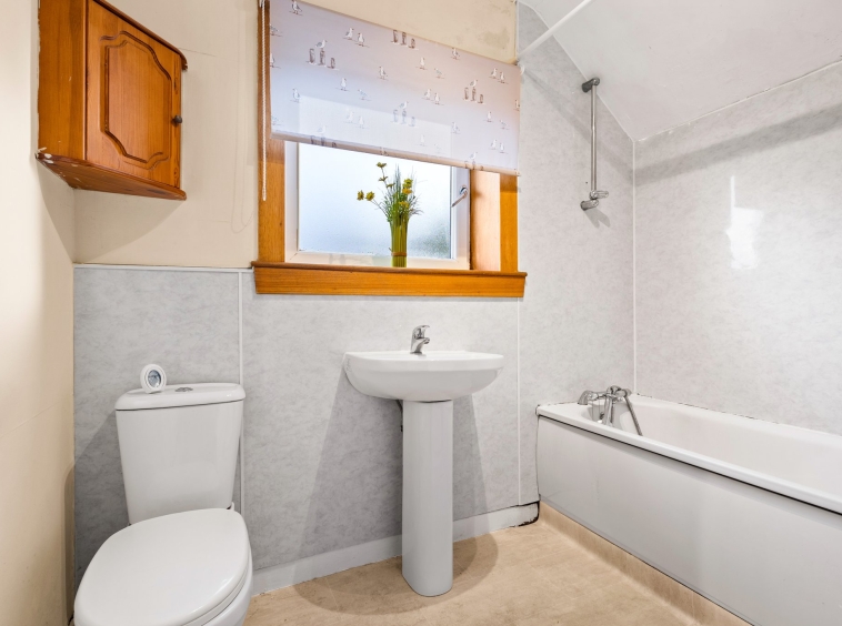 2.51m x 1.68m (8′ 3″ x 5′ 6″) Completing this property is the three piece bathroom suite offering WC, wash hand basin, mains shower over bath, wet wall finish around the bath, vinyl flooring and double glazed opaque window to the rear.