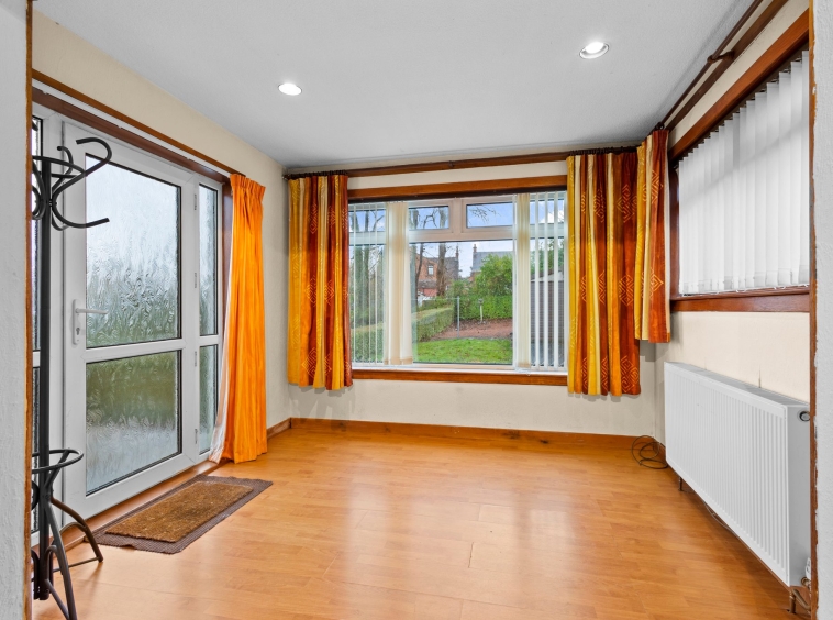 3.09m x 3.14m (10′ 2″ x 10′ 4″) Another flexible space which could be used as a sitting room or family room, featuring neutral decor, laminate flooring, dual aspect double glazed windows to the side and rear and opaque double glazed door to the rear gardens.