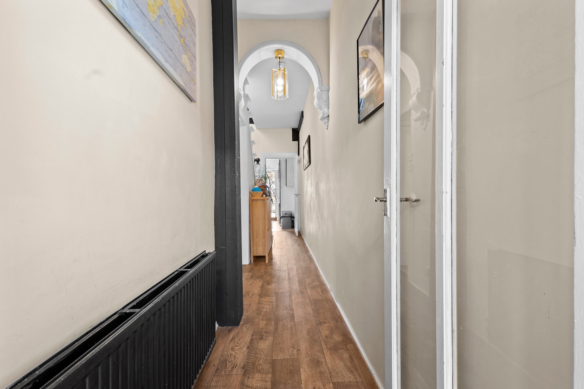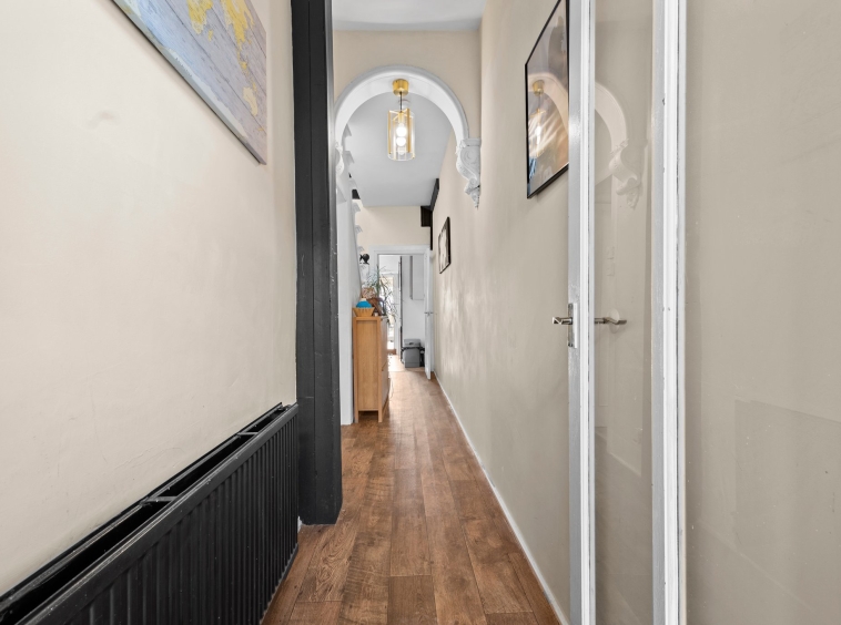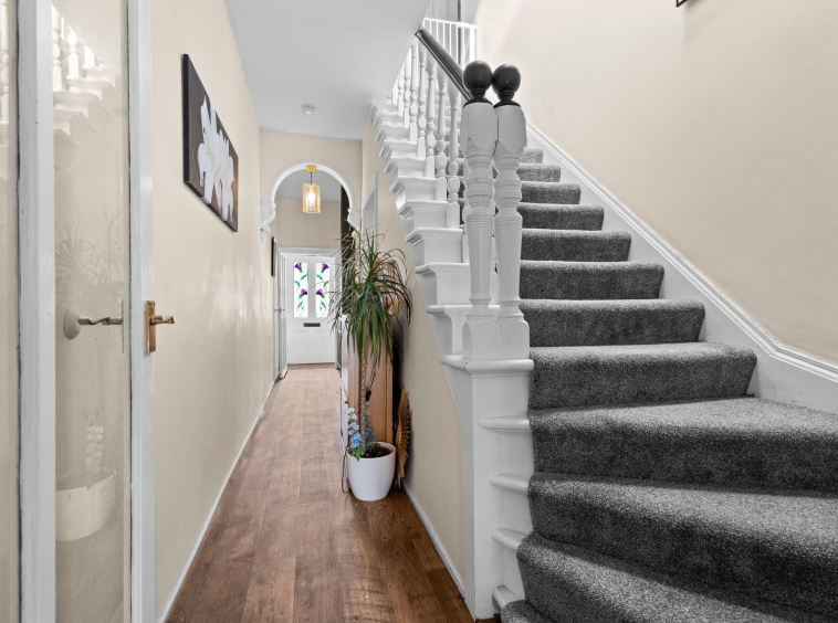 1.05m x 1.04m (3′ 5″ x 3′ 5″) Access is given via a modern outer wooden door to the welcoming entrance porch offering neutral décor and a glazed door leads to the hallway.