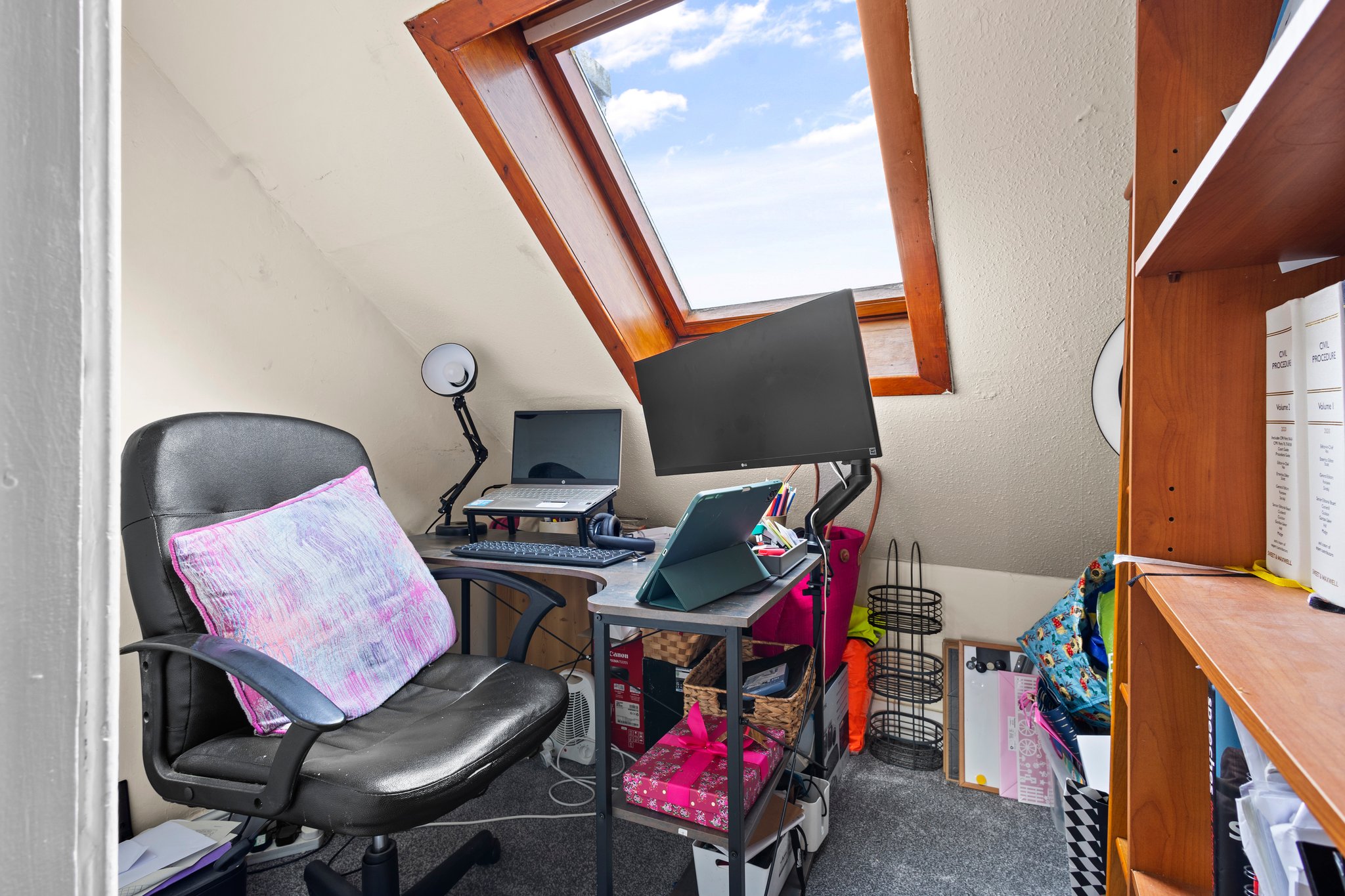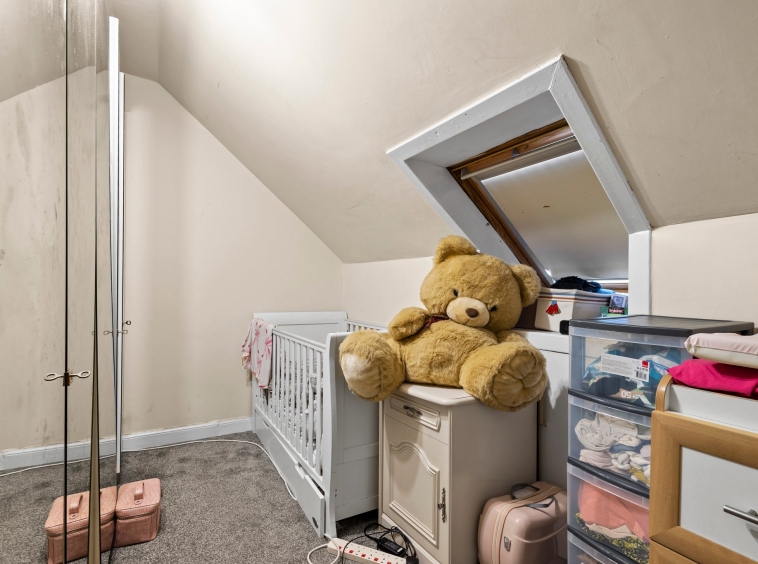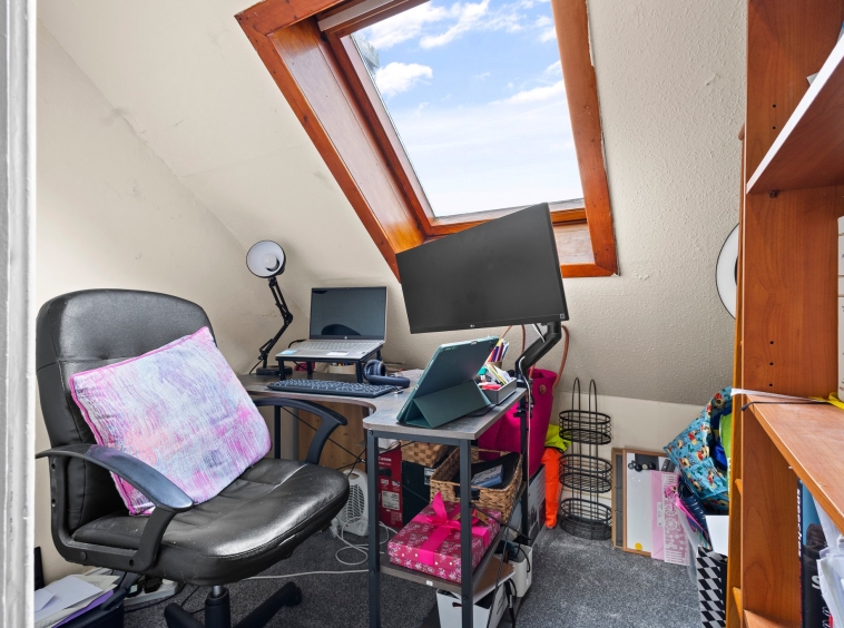 2.21m x 2.07m (7′ 3″ x 6′ 9″) Currently being utilised as an office space, featuring neutral decor, fitted carpet and double glazed velux window to the front.
