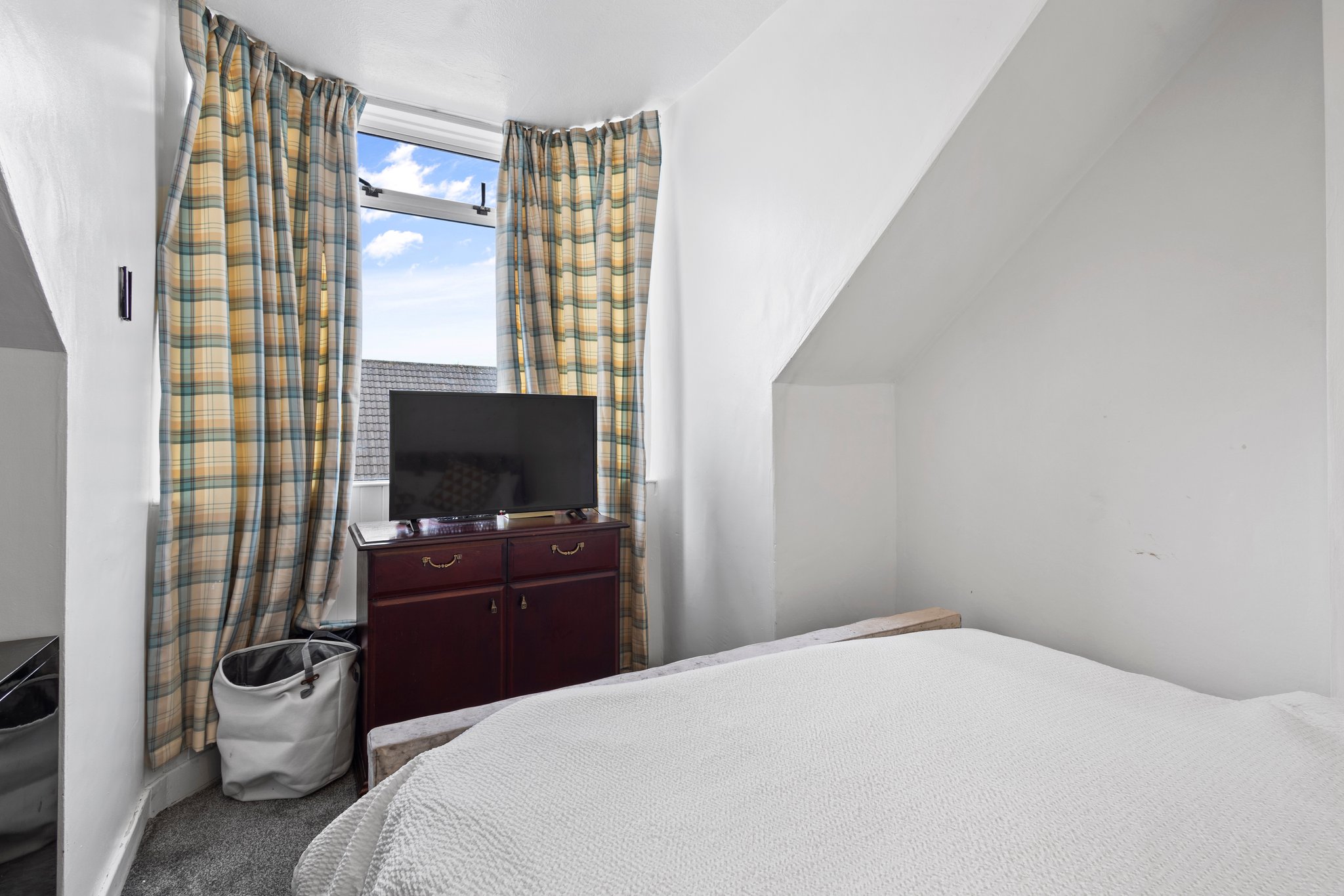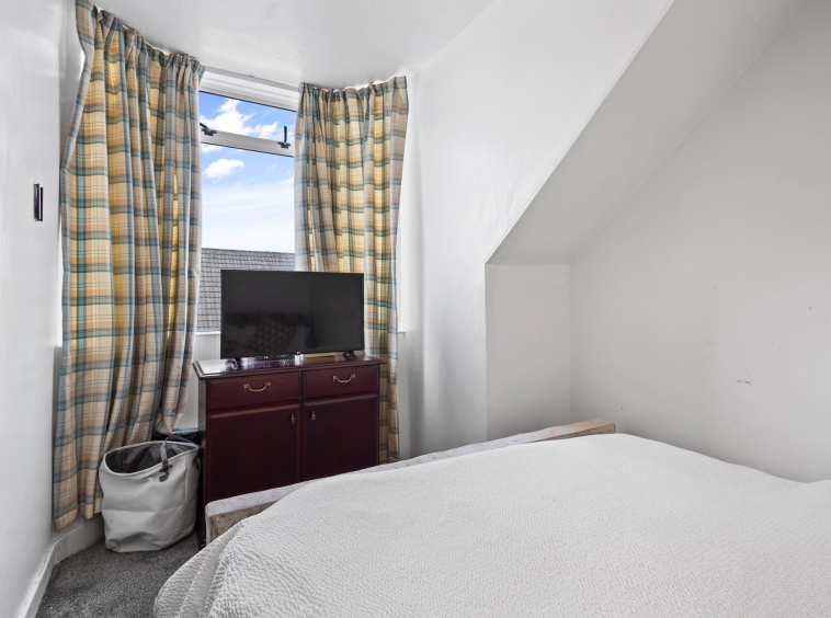 3.73m x 2.35m (12′ 3″ x 7′ 9″) Good sized single bedroom offering neutral decor, fitted carpet and double glazed velux window to the rear.