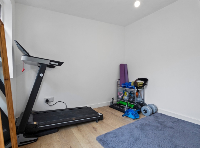 2.56m x 2.69m (8′ 5″ x 8′ 10″) Flexible space currently utilised as a home gym, offering neutral decor and laminate flooring.