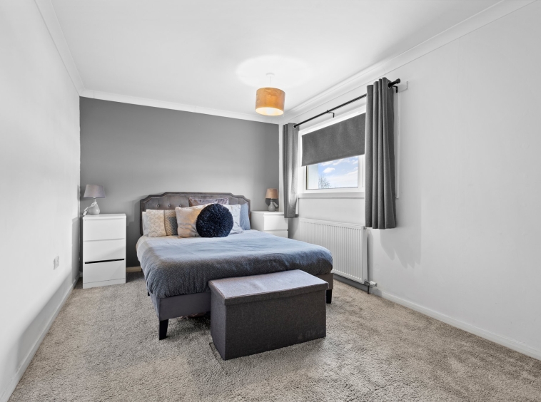 4.47m x 2.74m (14′ 8″ x 9′ 0″) The master bedroom is a generous double boasting stylish neutral decor, fitted carpet and a large double glazed window to the front.