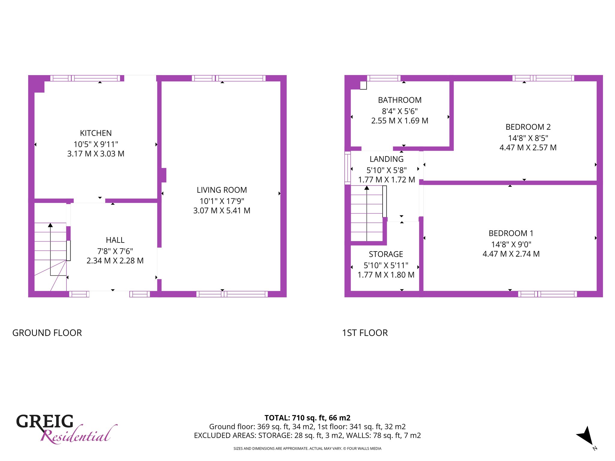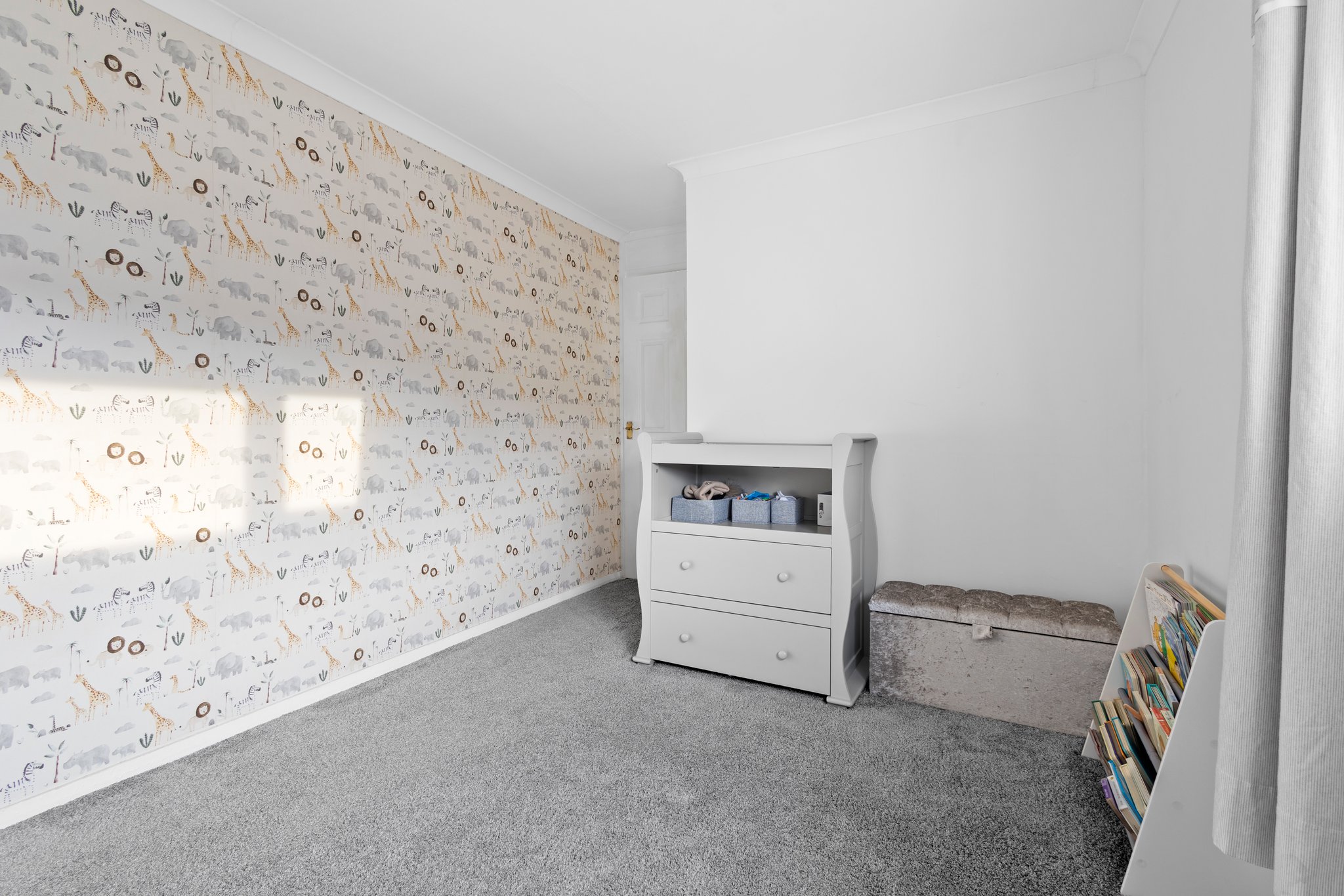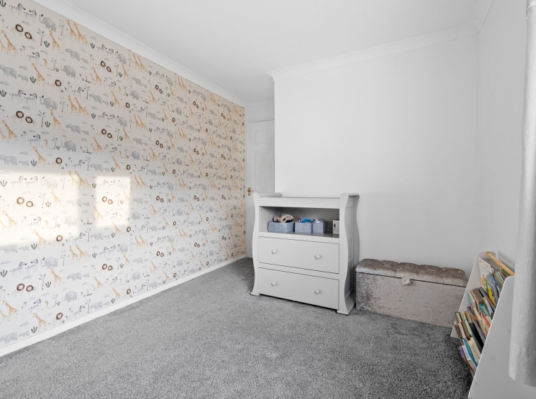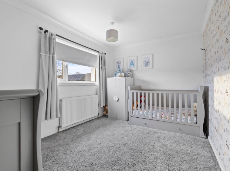 1.77m x 1.72m (5′ 10″ x 5′ 8″) The upper landing offers stylish decor, large practical storage cupboard, fitted carpet and provides access to two bedrooms and bathroom.