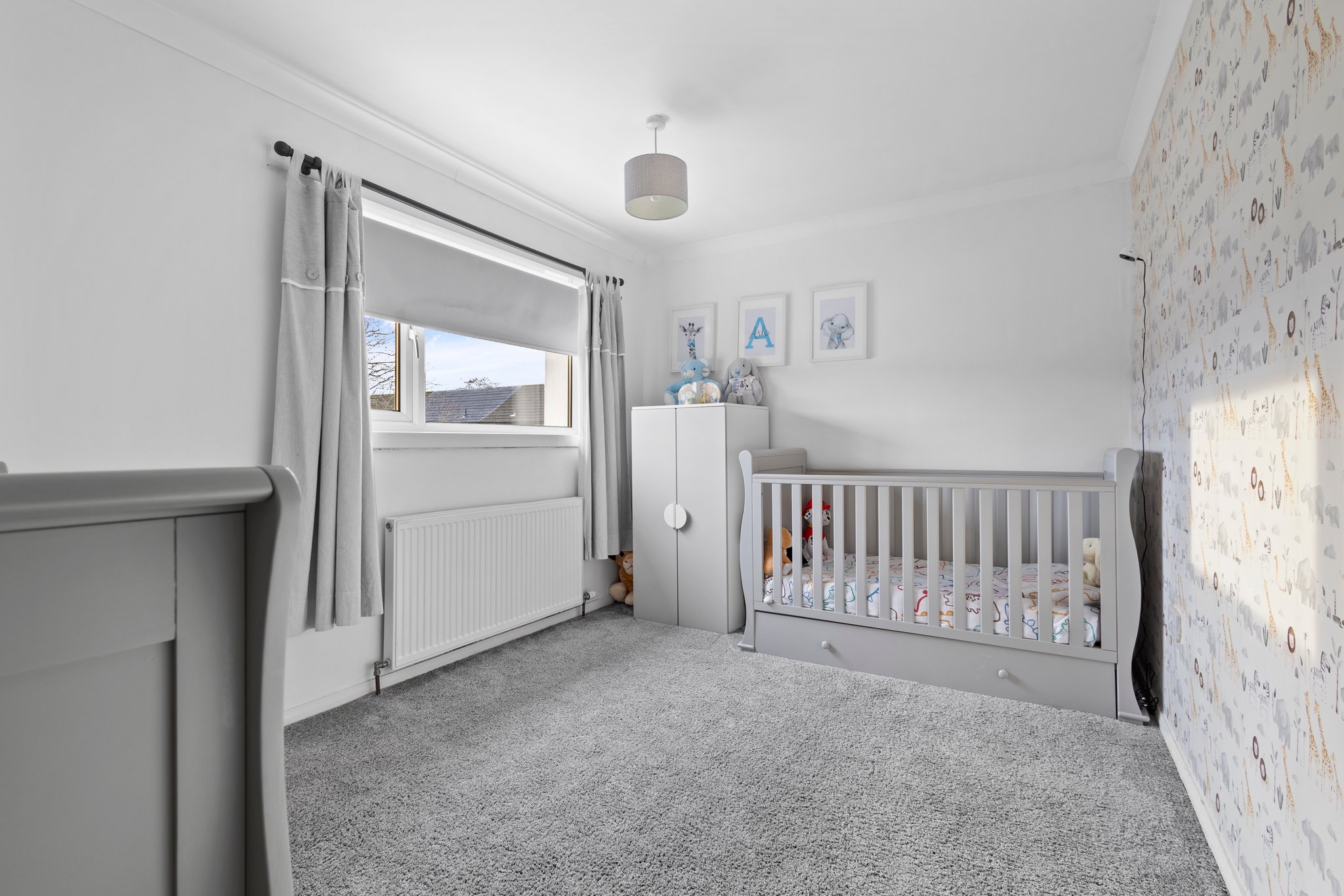 Spacious double bedroom with contemporary childrens decor, fitted carpet and a double glazed window to the rear.