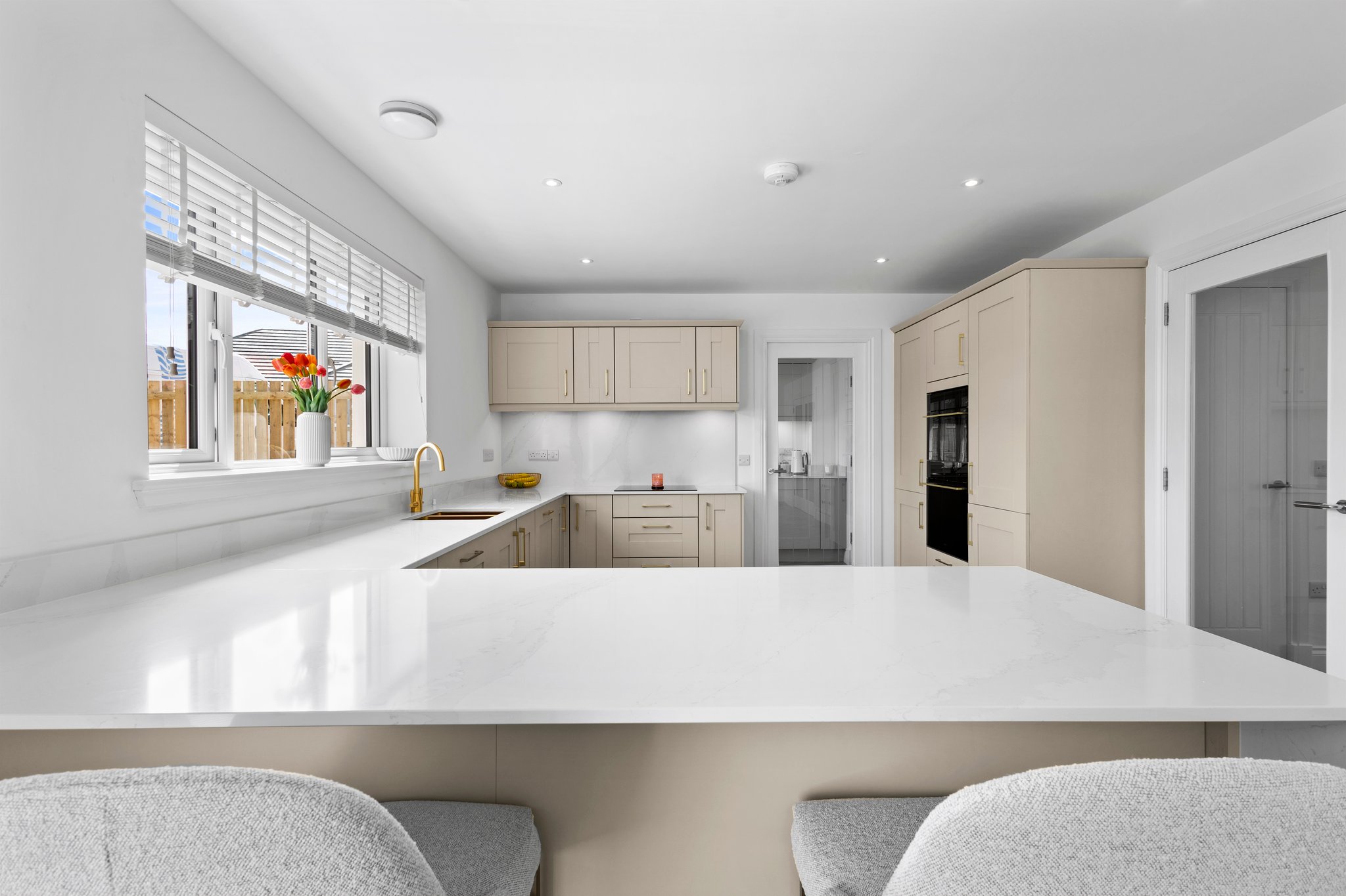 Positioned on a generous plot, The Willow offers private front and rear garden grounds with private paved driveway for two vehicles. The gardens are landscaped with a generous patio area levelled to natural contours, 6ft fence around rear garden and a side gate. External space also complemented by outdoor tap, doorbell, double electrical socket, front and rear sensor lights. The rear gardens offers a degree of privacy with green open space immediately to the rear and breath taking open outlooks.