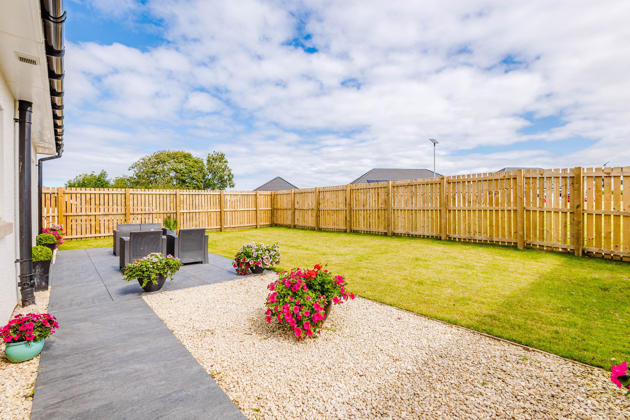 Positioned on a sizeable plot, The Aspen offers private front and rear garden grounds extending to around 331sq metres, with private paved driveway for two vehicles. The gardens are landscaped with a generous patio area levelled to natural contours, 6ft fence around rear garden and a side gate. External space also complemented by outdoor tap, doorbell, double electrical socket, front and rear sensor lights. The rear gardens offers a degree of privacy with green open space immediately to the rear and breath taking open outlooks.