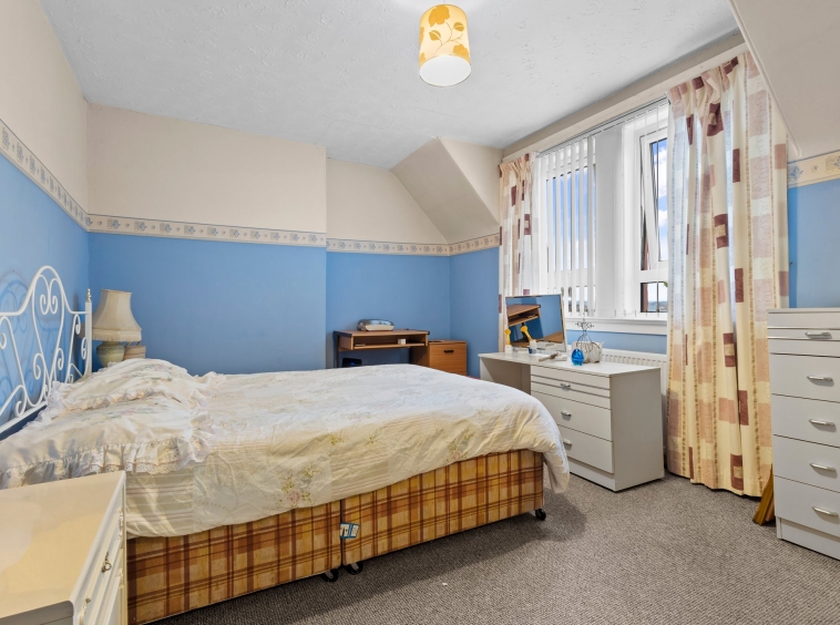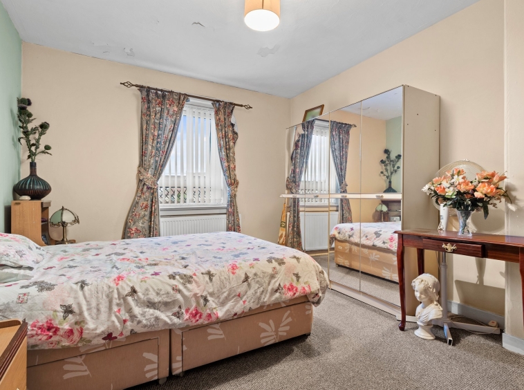 3.11m x 3.83m (10′ 2″ x 12′ 7″) Spacious double bedroom with soft neutral decor, fitted carpet and a double glazed window to the rear.