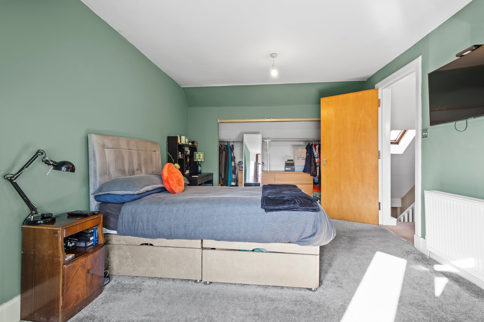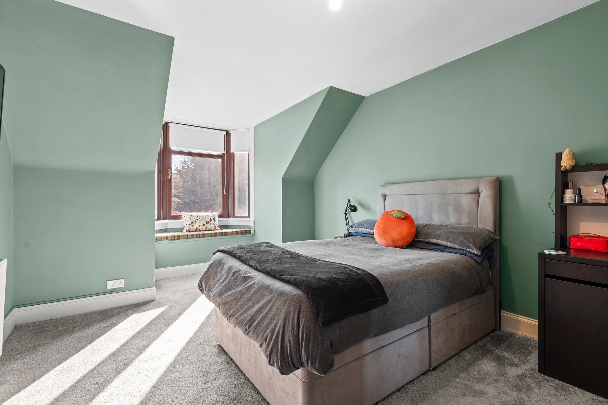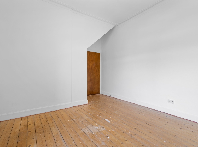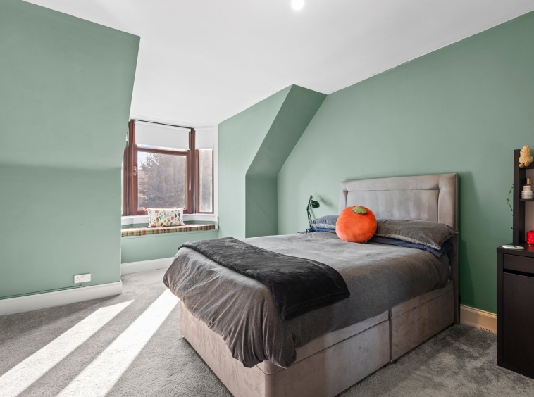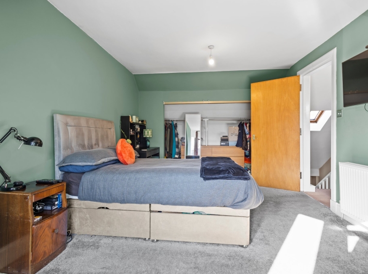 4.53m x 3.63m (14′ 10″ x 11′ 11″) Conveniently located on the lower level, a spacious bedroom with neutral decor, practical storage cupboard, ceiling corning, deep skirtings, restored solid wood floorboards and a double glazed window to the rear.