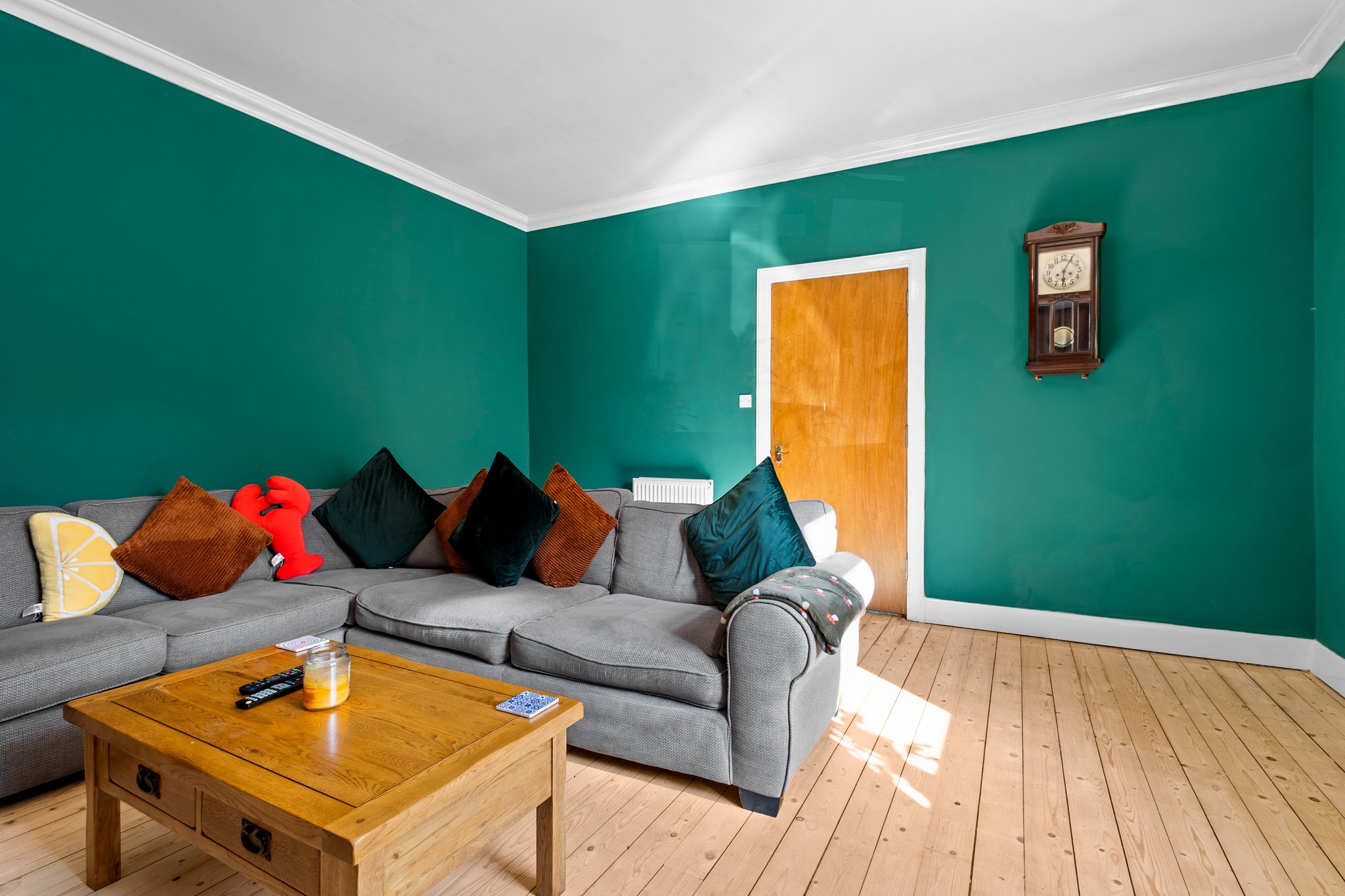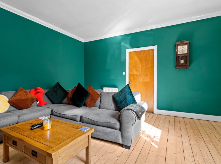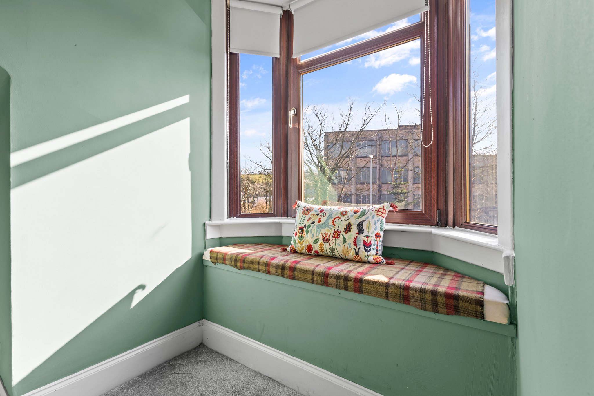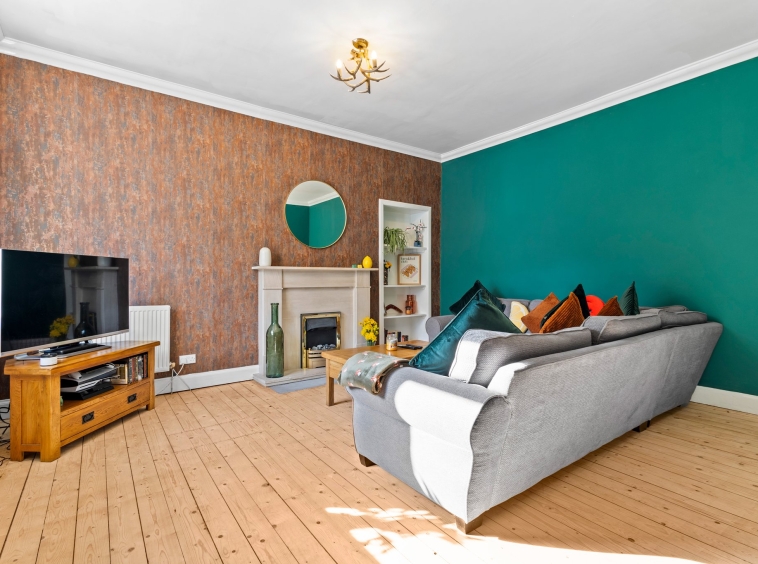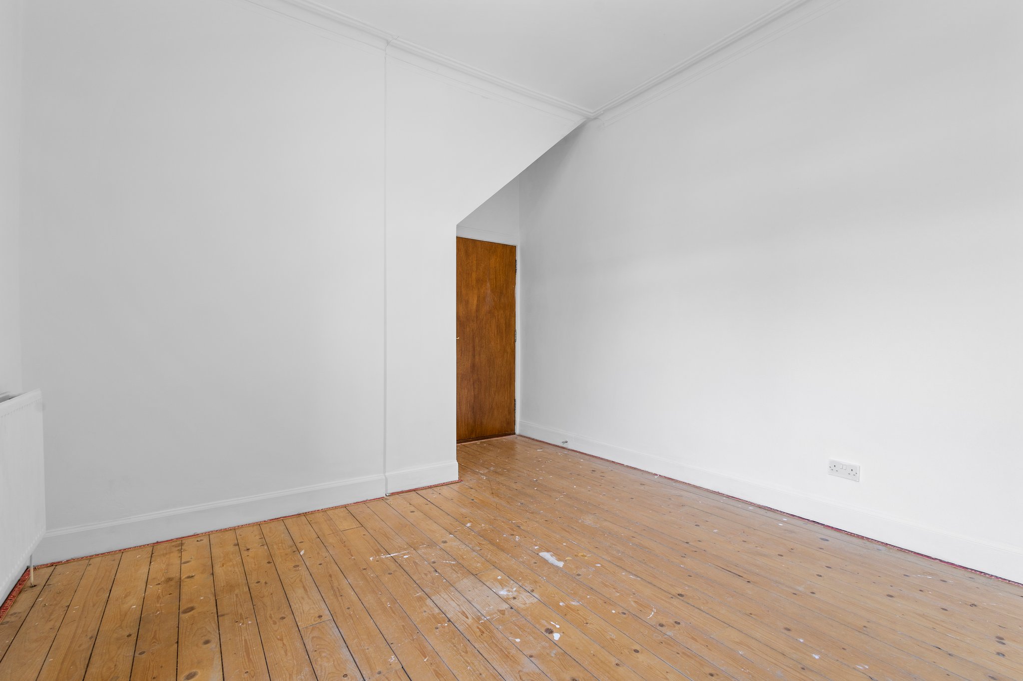 4.53m x 3.63m (14′ 10″ x 11′ 11″) Conveniently located on the lower level, a spacious bedroom with neutral decor, practical storage cupboard, ceiling corning, deep skirtings, restored solid wood floorboards and a double glazed window to the rear.