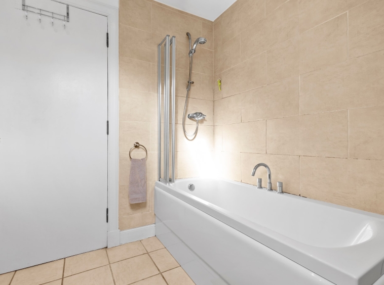 2.13m x 2.61m (7′ 0″ x 8′ 7″) Completing the accommodation is the family bathroom comprising of a wash hand basin, wc, bath with overhead mains shower, tiled walls and flooring and a double glazed velux window to the front.