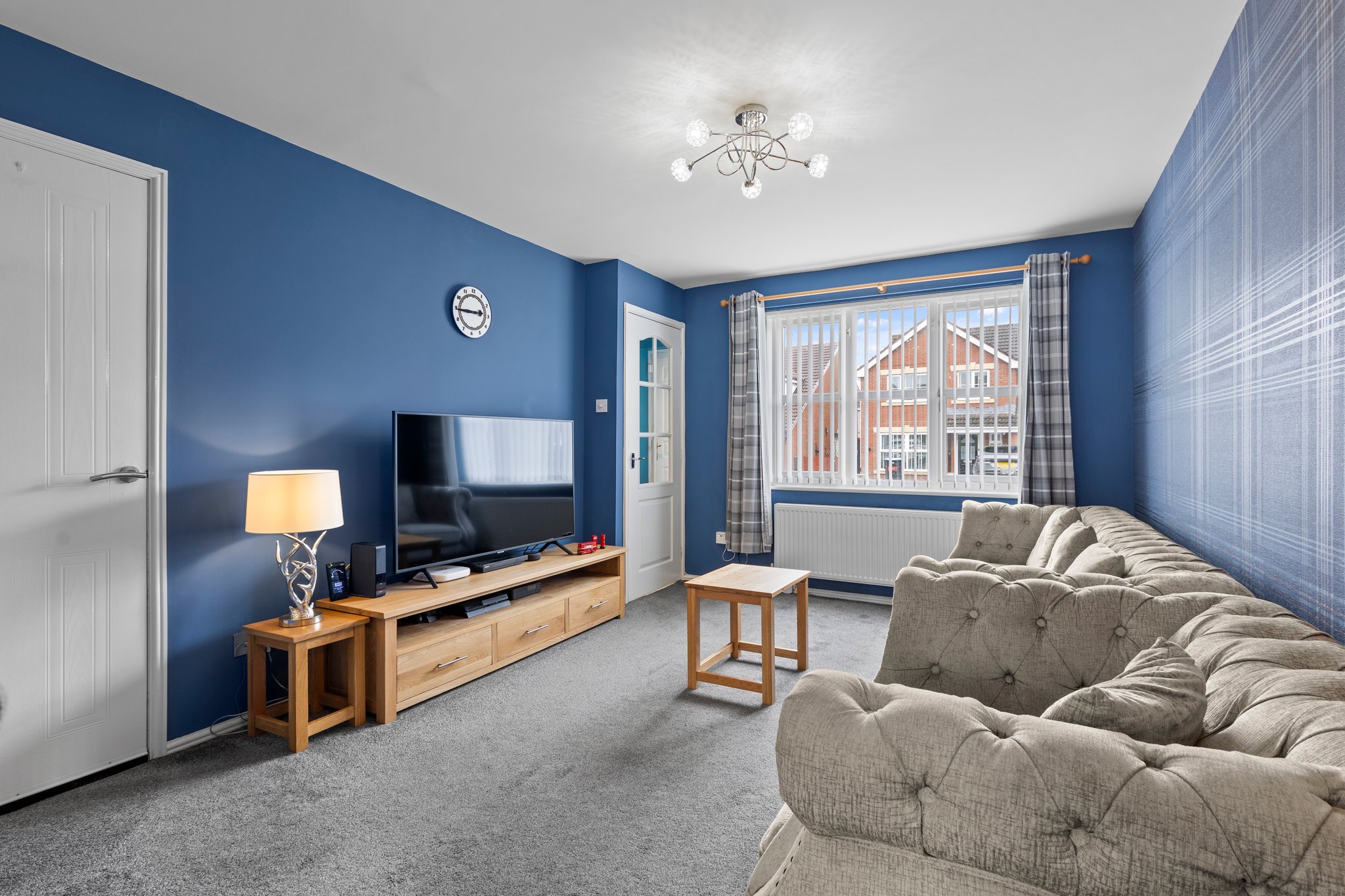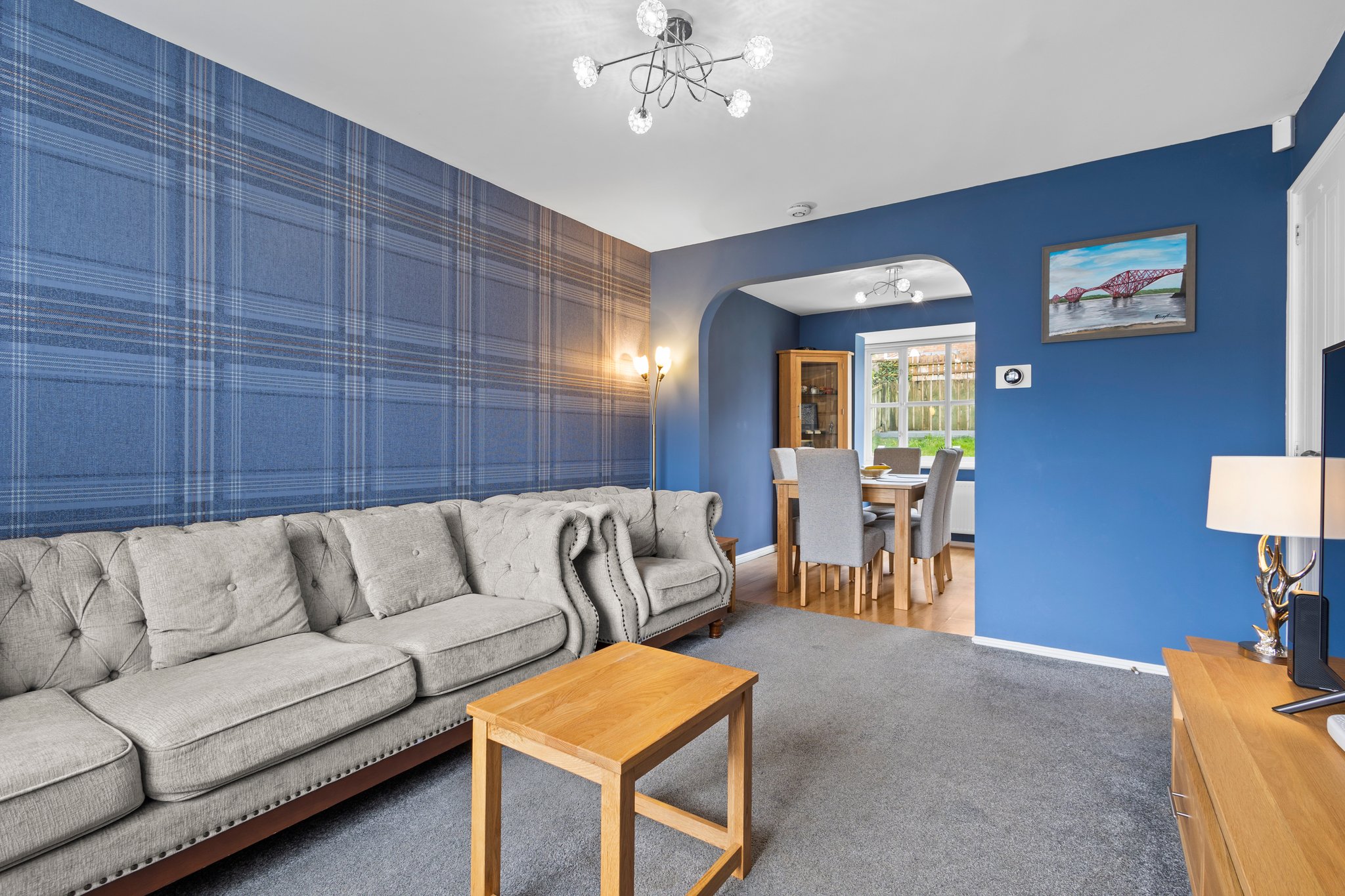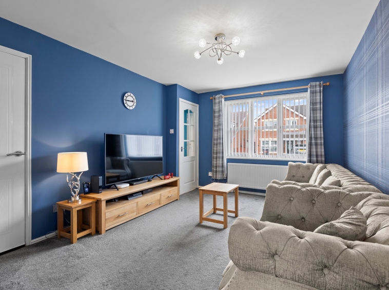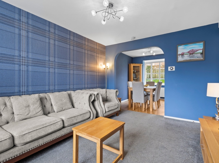 3.14m x 4.15m (10′ 4″ x 13′ 7″) Generous main apartment boasting modern decor, fitted carpet, convenient under stair storage cupboard, double glazed window to the front, open plan access to the dining area.