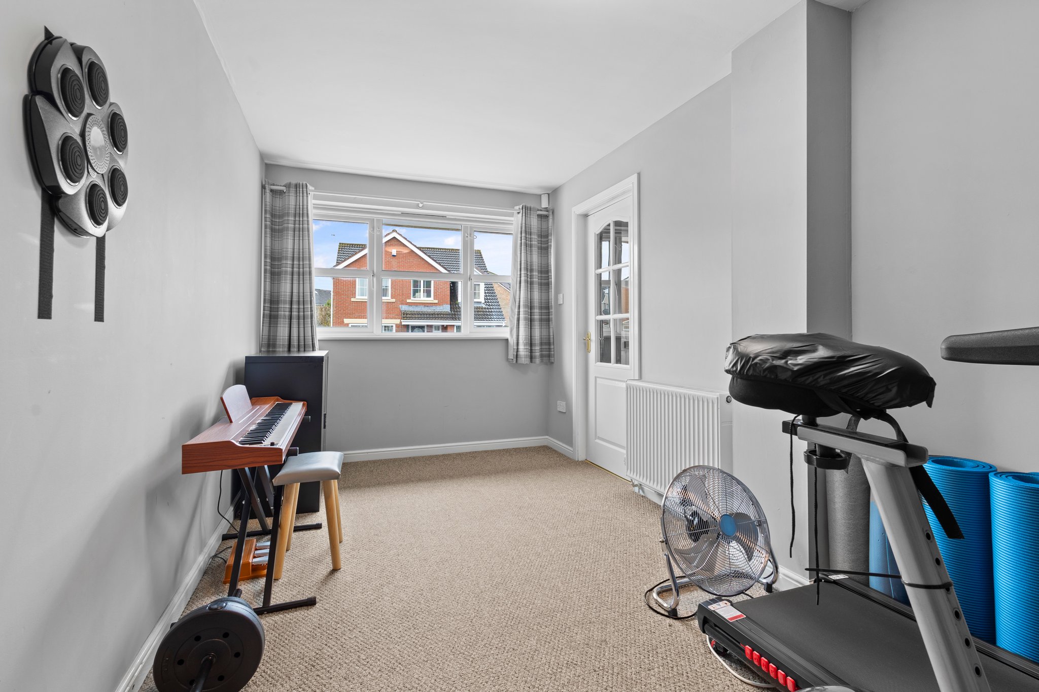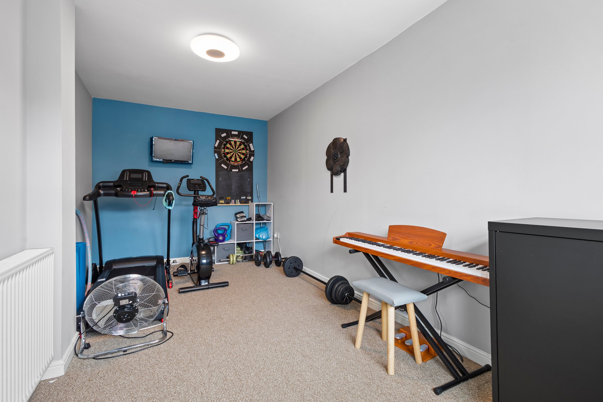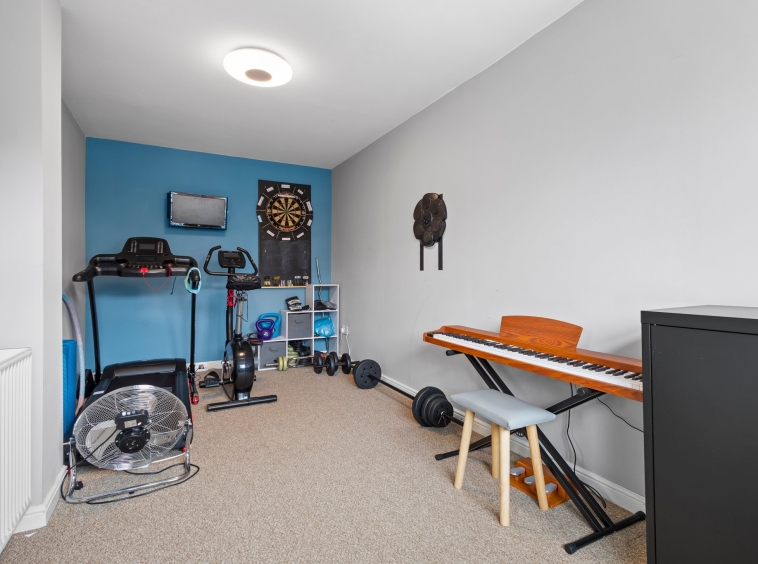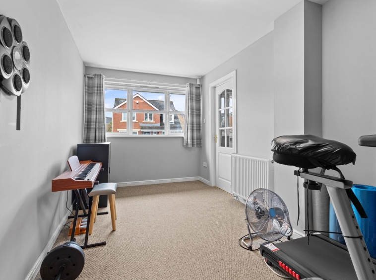 2.38m x 4.90m (7′ 10″ x 16′ 1″) Flexible living space currently utilised as a multi purpose gym/family room but could also be an extra bedroom, modern decor, fitted carpet and double glazed window the front.