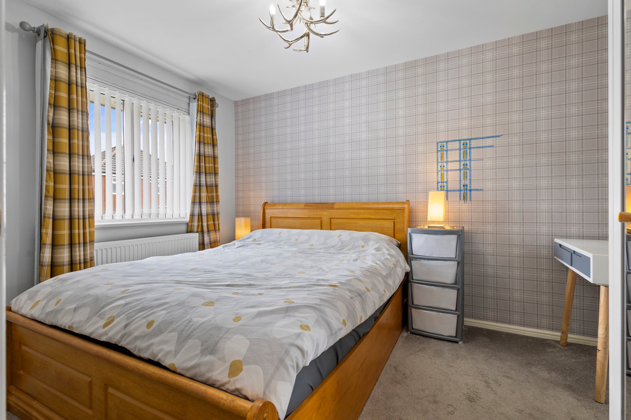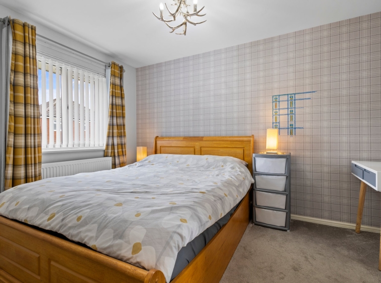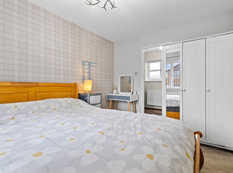 3.05m x 3.70m (10′ 0″ x 12′ 2″) Generous master bedroom with ensuite facility, modern decor, fitted carpet, double glazed window to the rear.