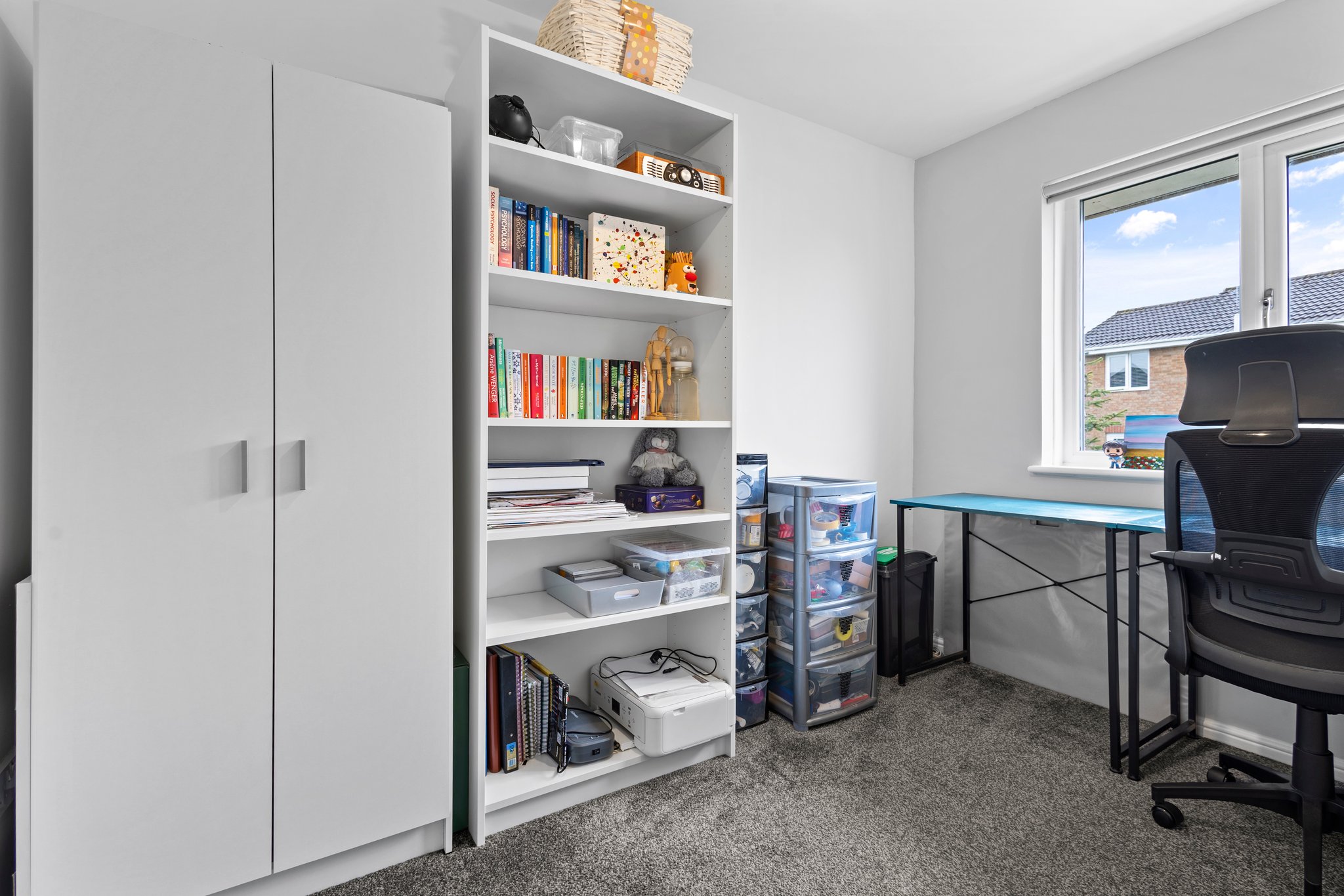 1.9m x 3.22m (6′ 3″ x 10′ 7″) Third bedroom featuring crisp white decor, fitted carpet and double glazed window to the rear.