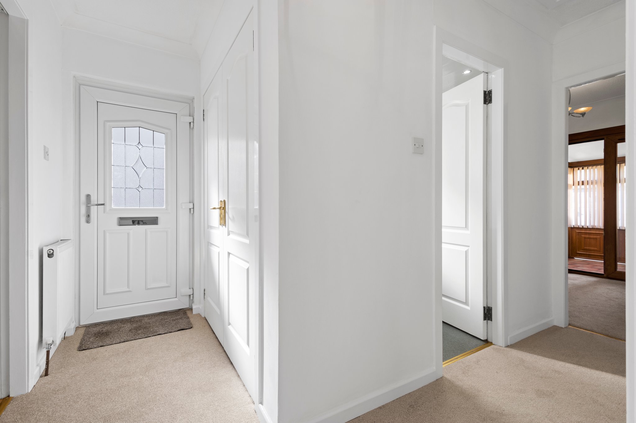 3.54m x 1.29m (11′ 7″ x 4′ 3″) 0.99m x 1.08m (3′ 3″ x 3′ 7″) The welcoming entrance hallway is complete with modern decor, ceiling coving, fitted carpet and a practical storage cupboard. Door access to the lounge, kitchen, two bedrooms and bathroom.