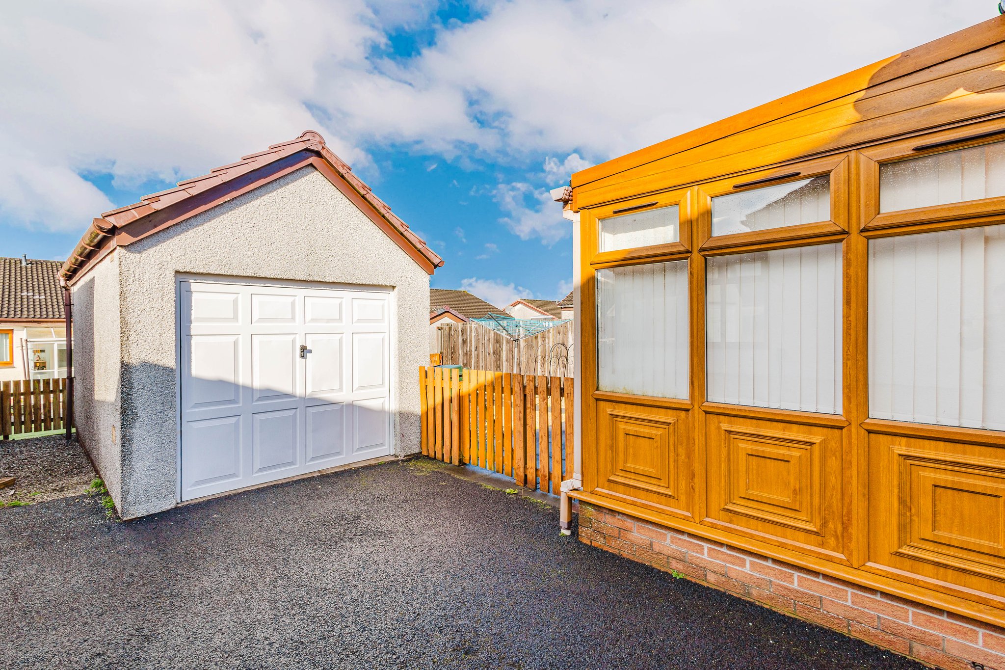 Positioned on a generous plot, this bungalow boasts private garden grounds to the front and rear. The front gardens are designed with ease of maintenance in mind being laid to decorative chips with a tarmac driveway to the side providing off street parking, leading to the detached garage with up and over door access. The rear gardens are fully enclosed and complete with a large chipped drying area and a paved patio perfect for al fresco dining and entertaining.