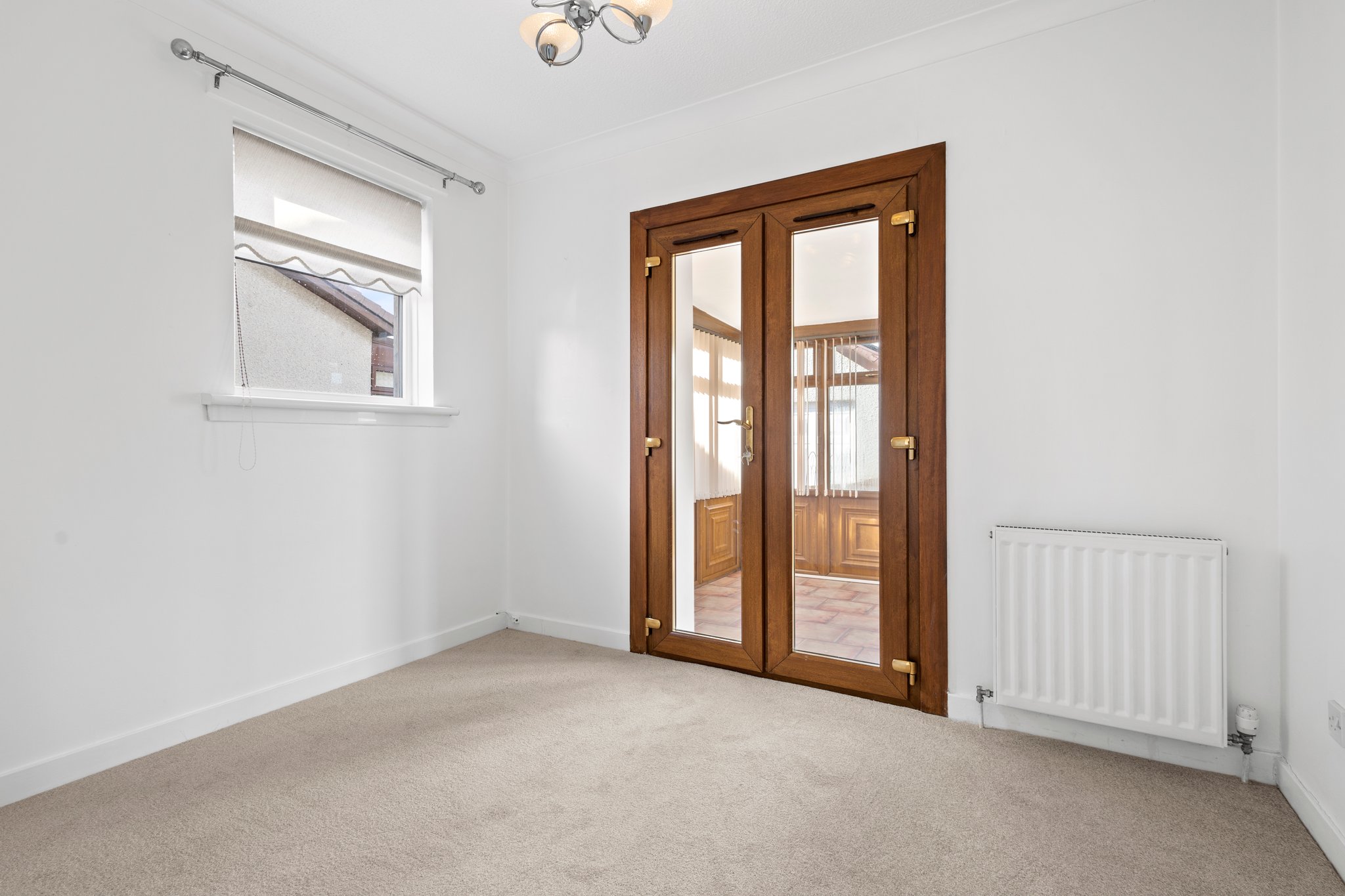 2.42m x 3.18m (7′ 11″ x 10′ 5″) The second double bedroom offers contemporary decor, ceiling coving, fitted carpet and a double glazed window to the side. French doors lead to the conservatory. A flexible apartment which could be utilised as a dining room.