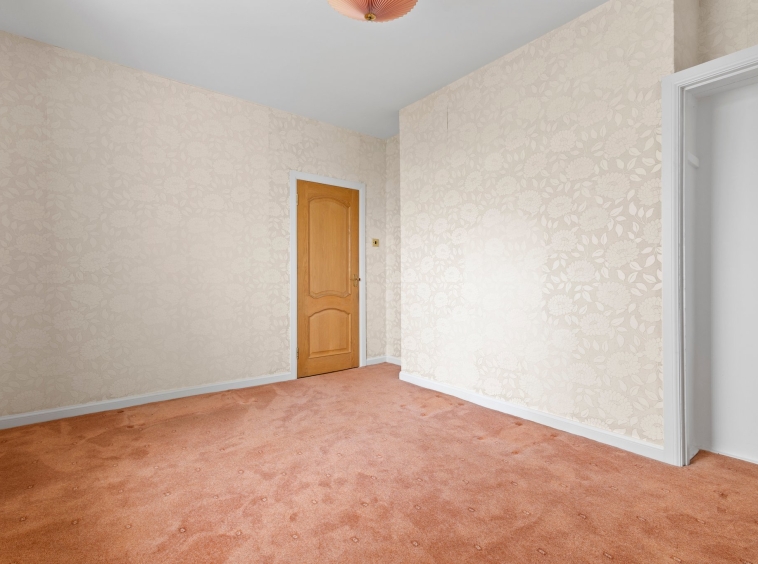 4.02m x 3.47m (13′ 2″ x 11′ 5″) Spacious double bedroom with neutral decor, storage cupboard, fitted carpet and a double glazed window to the rear.