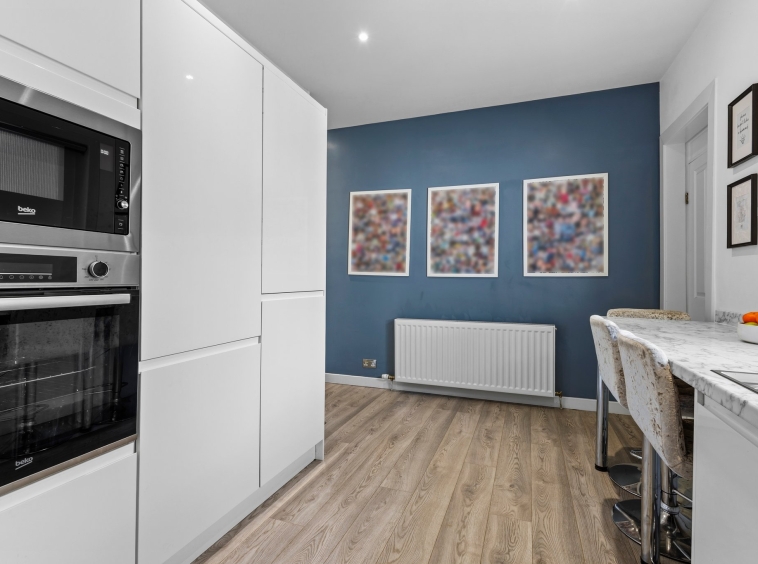 4.76m x 5.09m (15′ 7″ x 16′ 8″) 3.53m x 1.97m (11′ 7″ x 6′ 6″) Generously proportioned main apartment boasting neutral decor with a stylish contemporary feature wall in the dining area, marble fireplace, plentiful space for free standing furniture, traditional high ceiling with intricate ceiling cornicing and central rose, fitted carpet, a stunning ornate window looking into the hall and a large double glazed traditional bay window to the front.