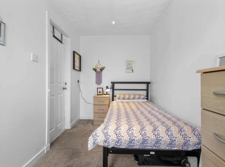 3.70m x 2.37m (12′ 2″ x 7′ 9″) Spacious double bedroom with neutral decor, fitted carpet and a double glazed window to the rear.