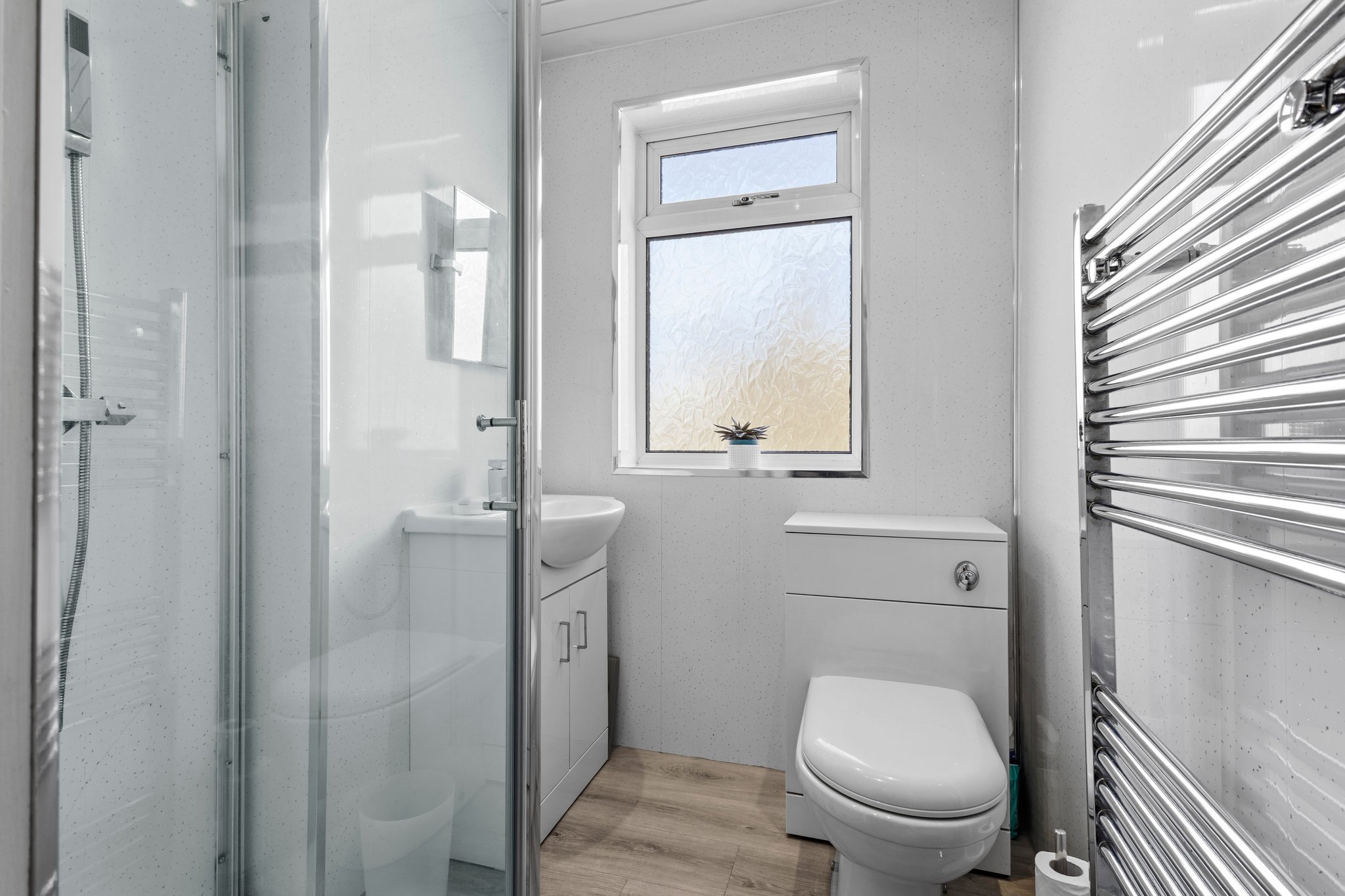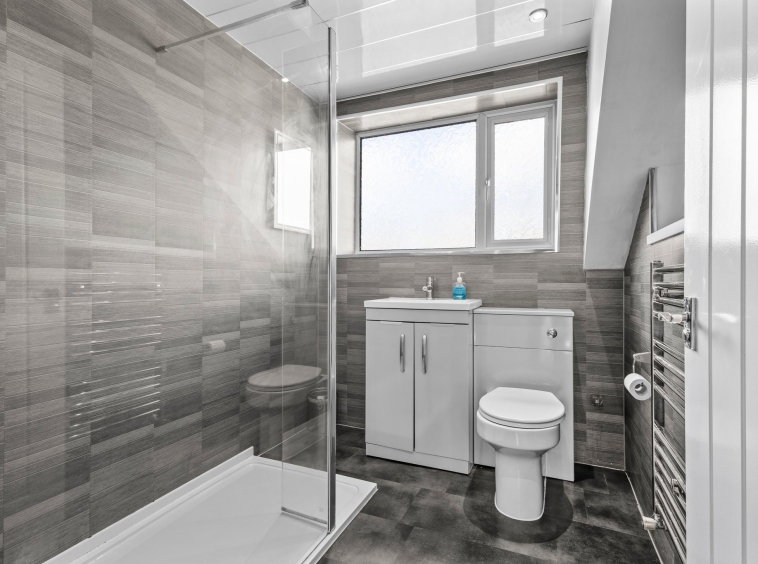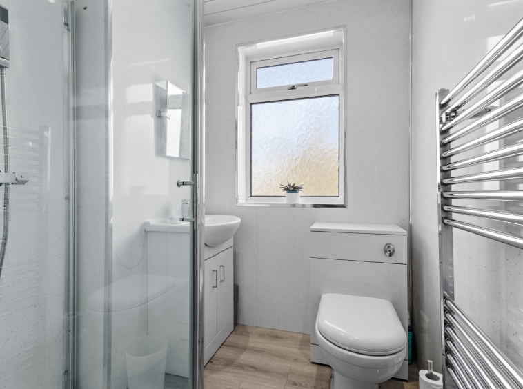 1.68m x 1.74m (5′ 6″ x 5′ 9″) Conveniently located on the lower, a stylish shower room comprising of a wash hand basin with vanity storage, wc, shower cubicle with mains shower, wet wall finish, heated towel rail, ceiling spotlights, vinyl flooring and a double glazed window to the rear.