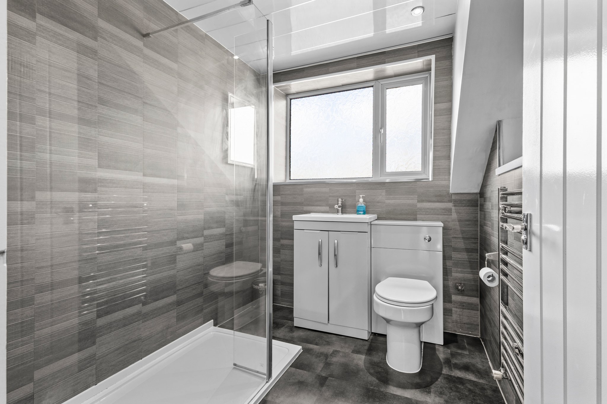 Completing the accommodation is the family bathroom comprising of a wash hand basin with vanity storage, wc, shower cubicle with mains shower, stylish wet wall finish, heated towel rail, ceiling spotlights and a double glazed window to the rear.