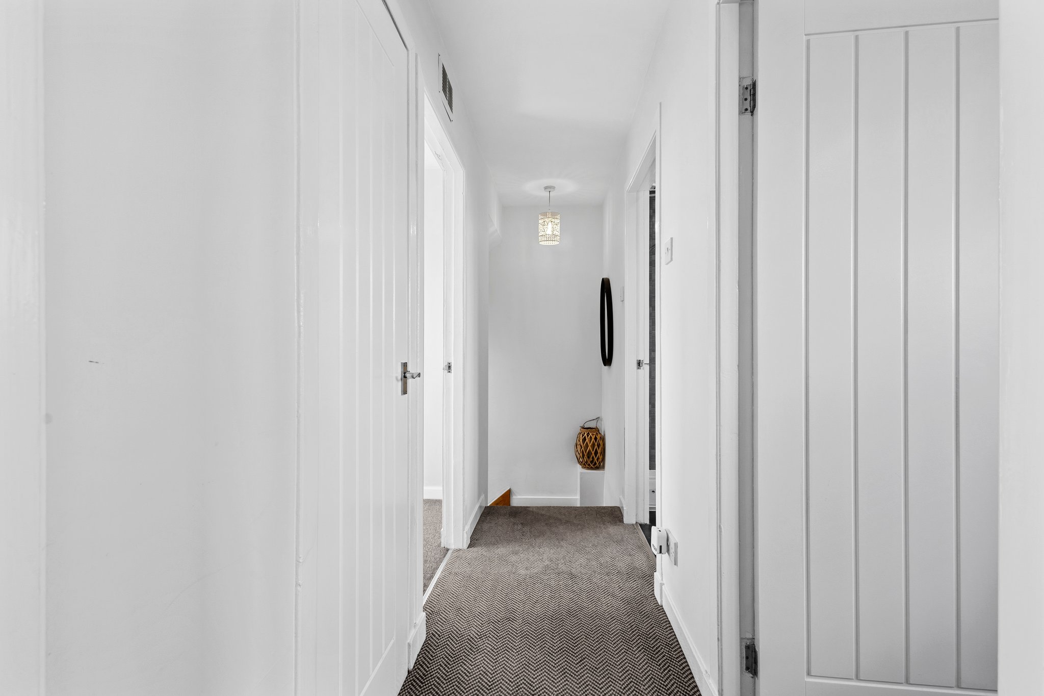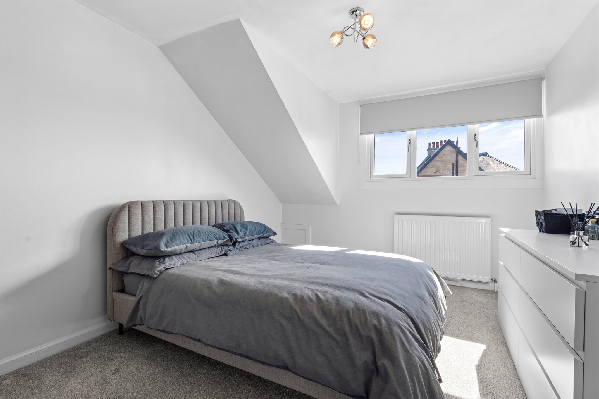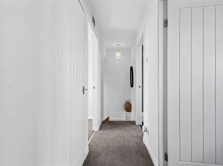 2.49m x 3.95m (8′ 2″ x 13′ 0″) Rear facing double bedroom located on the lower level, boasting neutral decor, fitted carpet and a double glazed window.