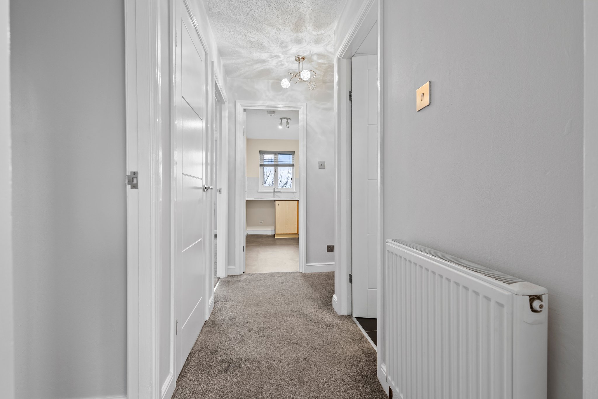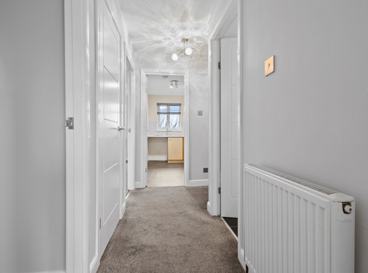 3.03m x 1.76m (9′ 11″ x 5′ 9″) Access is given to a spacious hallway offering modern neutral decor, practical storage cupboard and fitted carpet. The hallway gives access to all apartments.