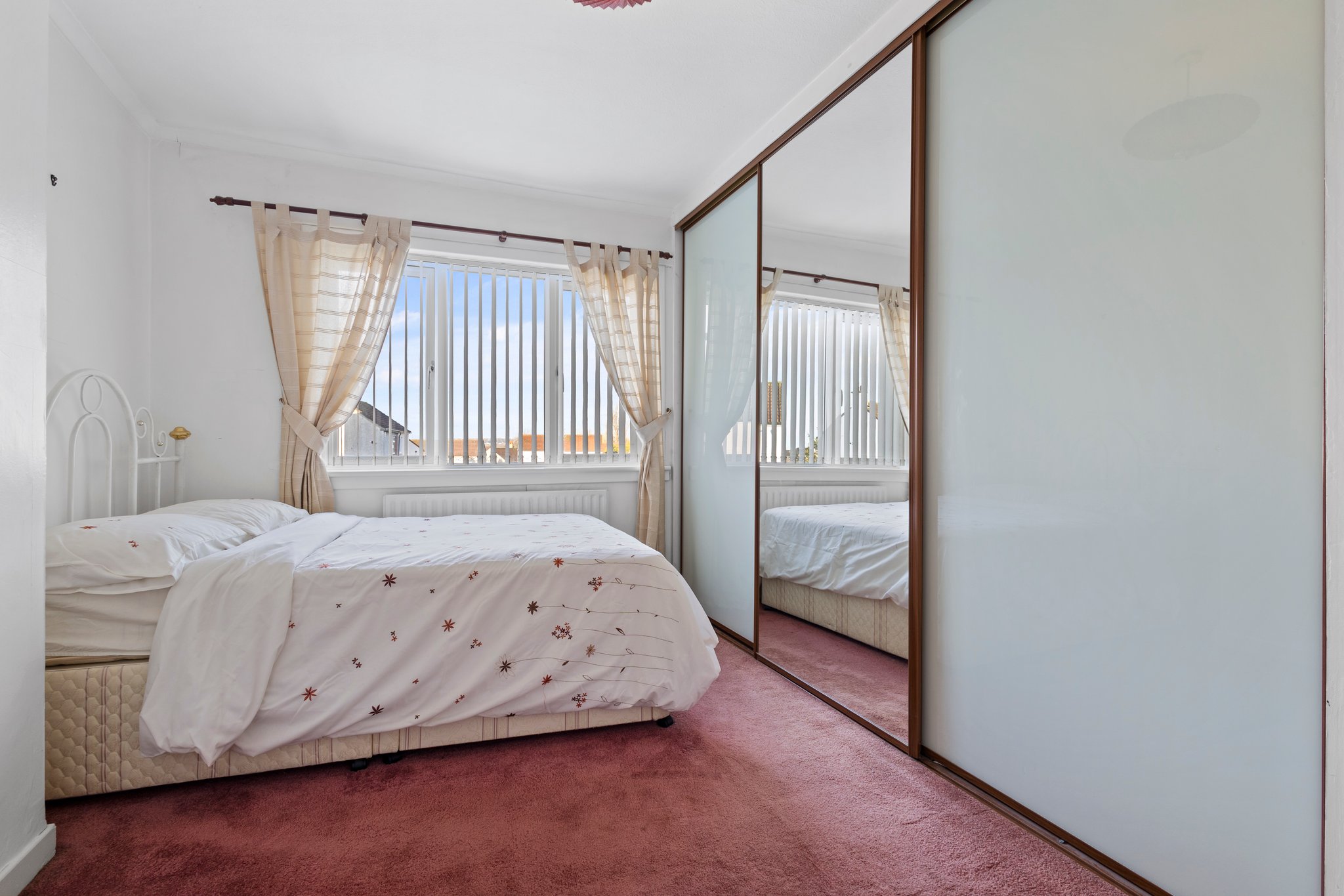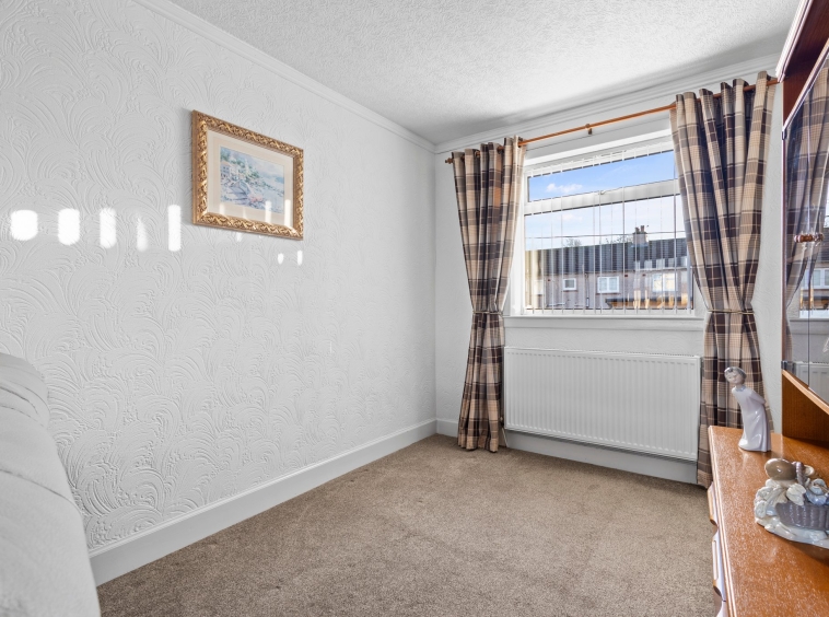 3.80m x 2.99m (12′ 6″ x 9′ 10″) The master bedroom is a generous double offering neutral decor, triple fitted wardrobes providing ample storage, ceiling coving, fitted carpet and a double glazed window to the front.