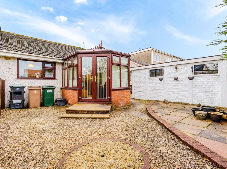 This property is set on a generous plot boasting private front, side and rear gardens, the front garden has been fully laid to chip with a large paved driveway to the side allowing for ample off street parking and leading to the detached garage. The rear garden boasts an area laid to chips and a paved patio perfect for al fresco dining and entertaining.
