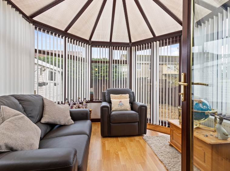 3.41m x 3.34m (11′ 2″ x 10′ 11″) Superb fully glazed conservatory offering additional family space with neutral decor and laminate flooring.