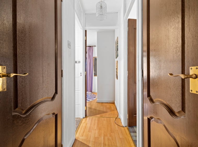 1.32m x 1.73m (4′ 4″ x 5′ 8″) Access is given to a spacious welcoming hallway boasting neutral decor, practical storage cupboard and laminate flooring. The hallway provides access to the lounge and kitchen.