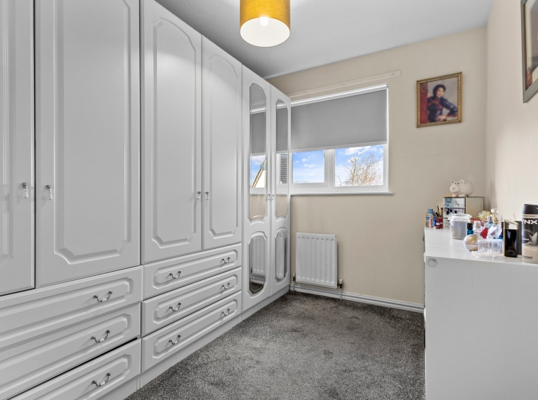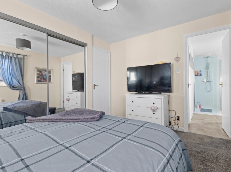 2.81m x 3.69m (9′ 3″ x 12′ 1″) The master bedroom is a superb double offering neutral decor, triple fitted wardrobes, fitted carpet,a large double glazed window to the front and access to en-suite facilities.